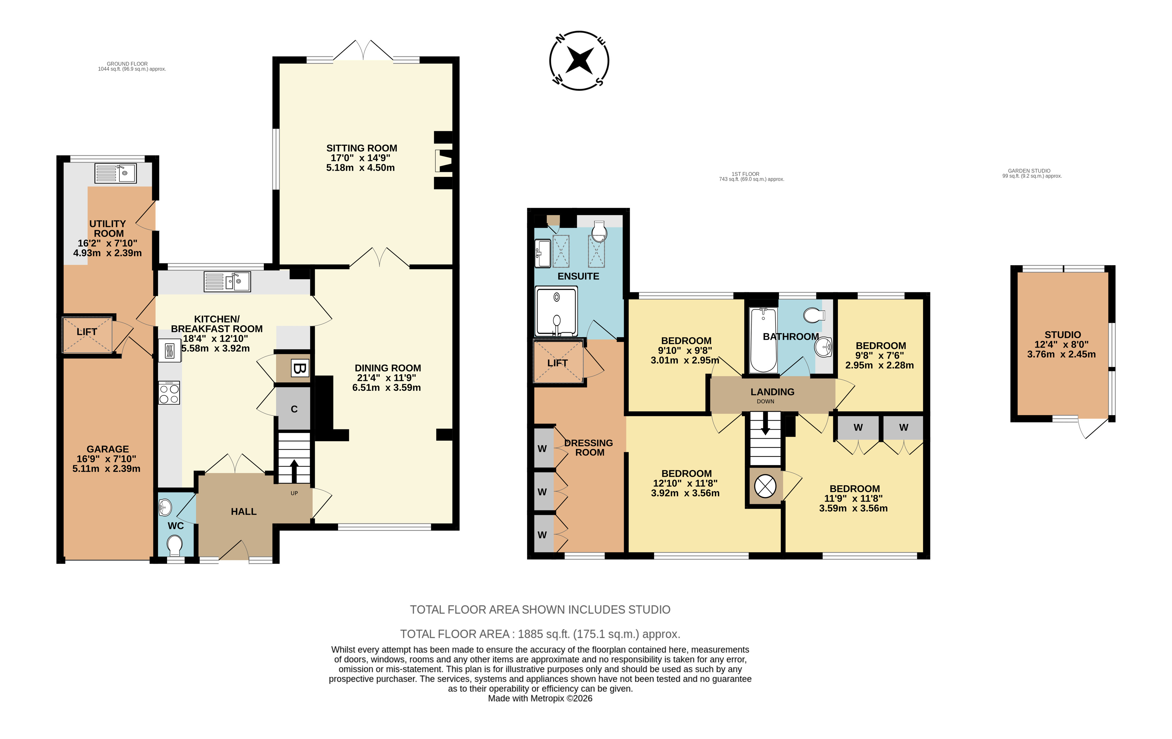 Upstairs, the property offers four bedrooms, three of which are generous doubles, all served by a family bathroom. The principal bedroom benefits from a spacious layout, an open-plan ensuite wet room and an accessible walk-in dressing room, creating a superb main suite.