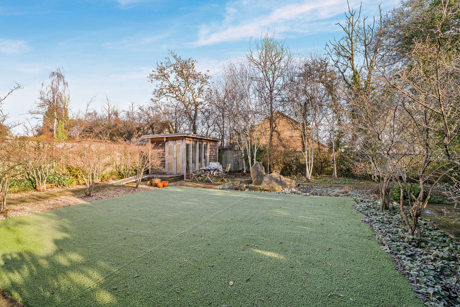 Outside, the north-east facing rear garden provides a delightful backdrop, mainly laid to lawn with mature borders, established trees and a paved patio—ideal for summer entertaining and al fresco dining. A useful summerhouse/home office, complete with power, offers flexible space for working from home or garden storage.