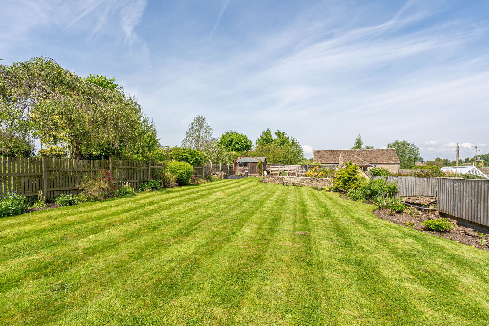 A front lawn bound by colourful flower beds and mature hedging sets the property back from the lane. The large rear garden is a delightful additional measuring approximately 130ft long. The double patio doors from the living room and kitchen connect superbly to the garden opening to a private secluded seating terrace ideal for alfresco dining. Steps lead up to the extensive lawn which is surrounded by well-stocked borders. At the far end there is a vegetable garden alongside a timber shed with power connected. On street parking is available in the centre of the village.