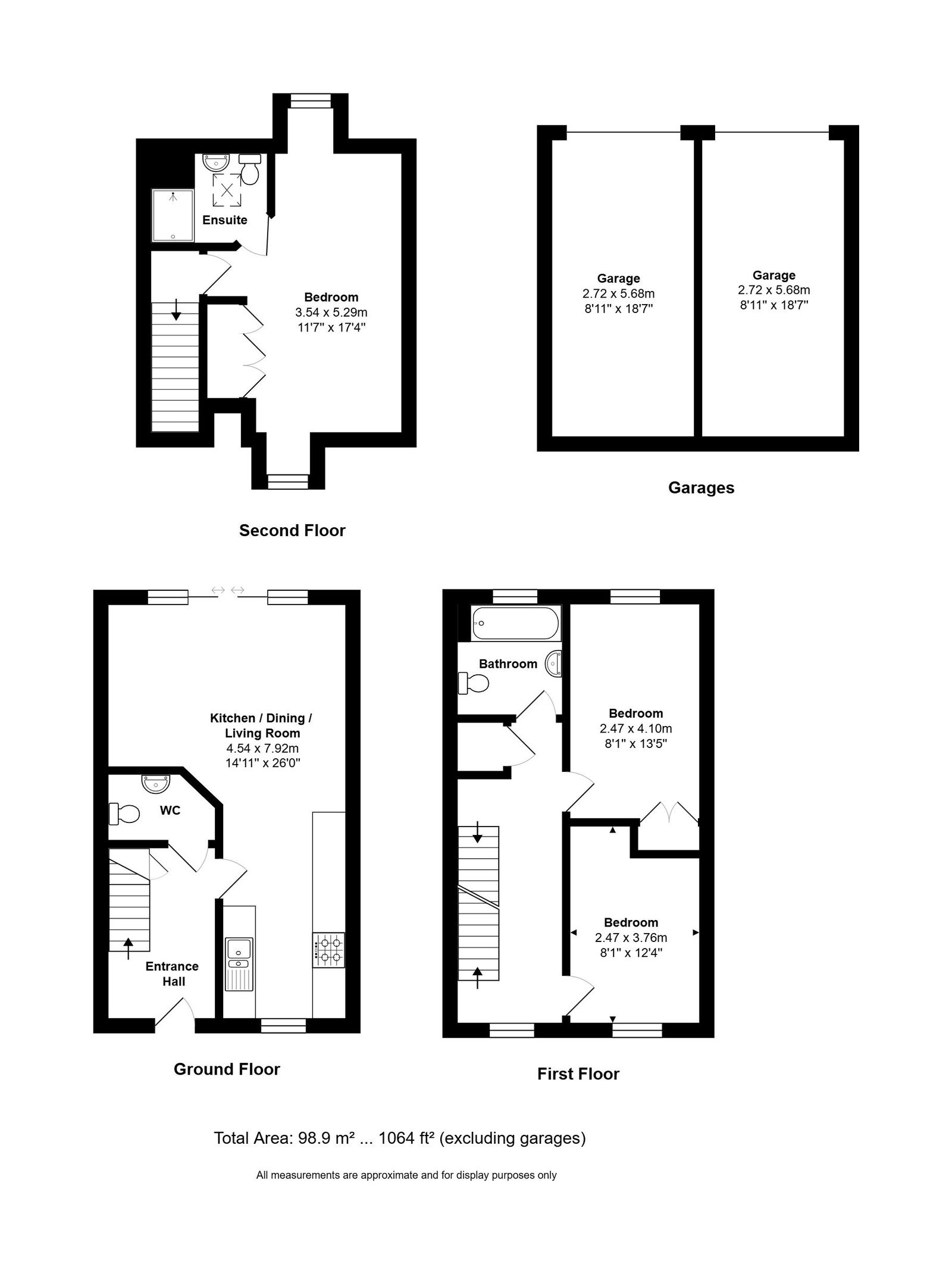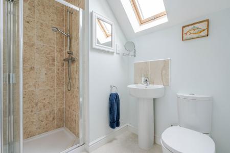 The accommodation takes full advantage of the elevated and uninterrupted views. The ground floor comprises an entrance hall with understairs storage and a WC off, leading to the spacious L-shaped kitchen, dining and living room. The kitchen is equipped with a range of integrated appliances including a gas hob, fridge/freezer, dishwasher, microwave, and oven. The living area has double sliding doors opening to the garden. On the first floor, there are two bedrooms and a family bathroom. The principal bedroom occupies the entire top floor comprising a dual-aspect double bedroom with fitted wardrobes, and an en-suite shower room.