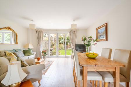 The mature rear garden is a secluded haven fully enclosed and laid to lawn with a seating terrace. There is a small front garden overlooking the river and an ideal area to place a bench and enjoy the tranquillity. The property has the fantastic addition of two garages located behind the garden beneath the coach house.