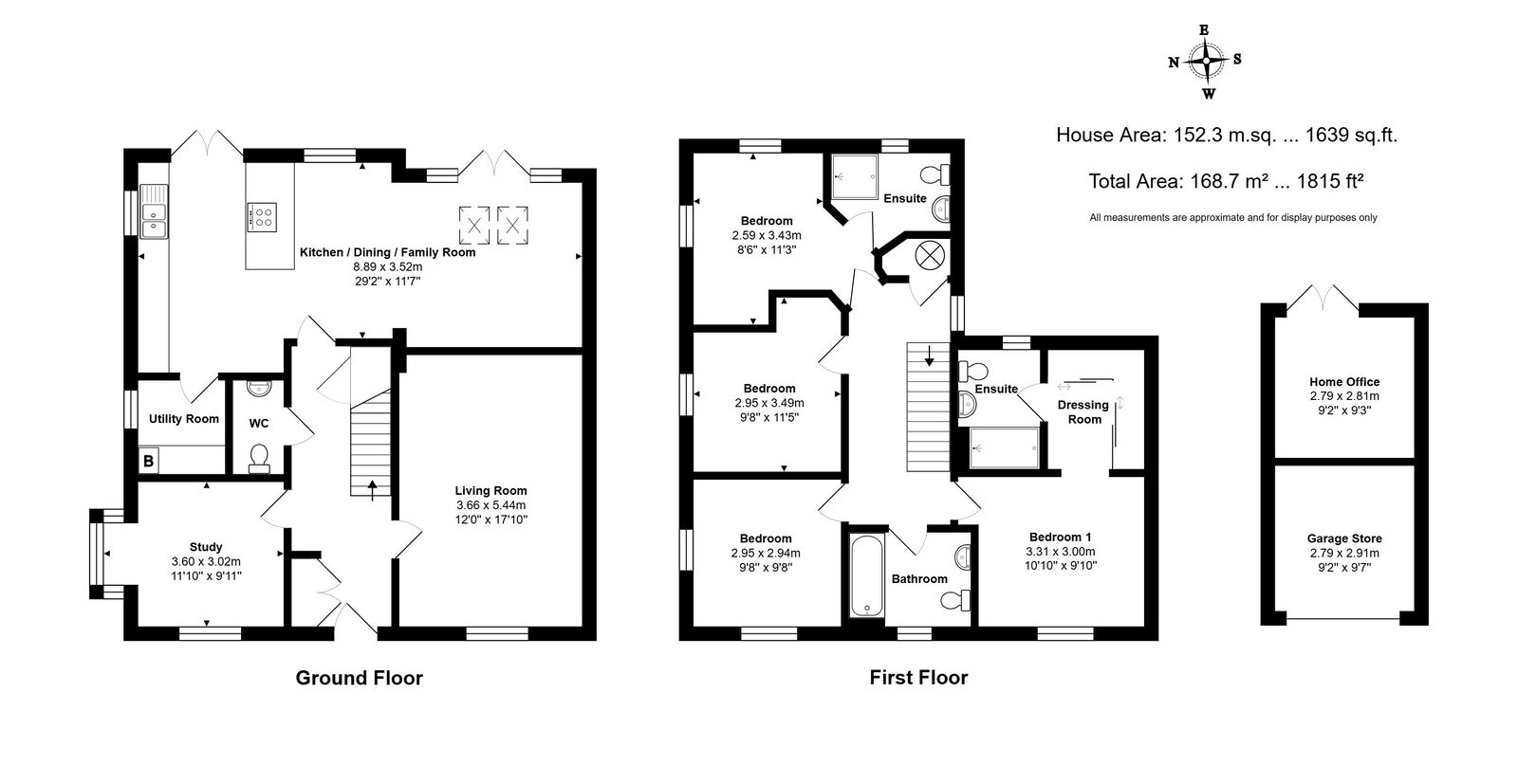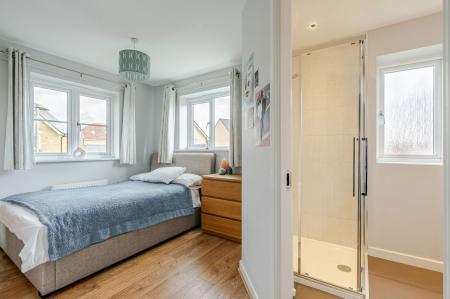 The ground floor layout centres around a spacious entrance hall with convenient built-in storage, serving two front reception rooms: a good-sized living room, and a light-filled study featuring a bay window. The rear open plan kitchen/family room is the heart of the home and equally well-lit with natural light through two sets of patio doors and skylights. The kitchen is fitted with a peninsula unit and a range of integrated appliances, together with a separate utility room. On the first floor, there are four bedrooms and a family bathroom. The excellent principal bedroom suite has both a fitted dressing room and en-suite shower room. The second bedroom also benefits a private en-suite.
