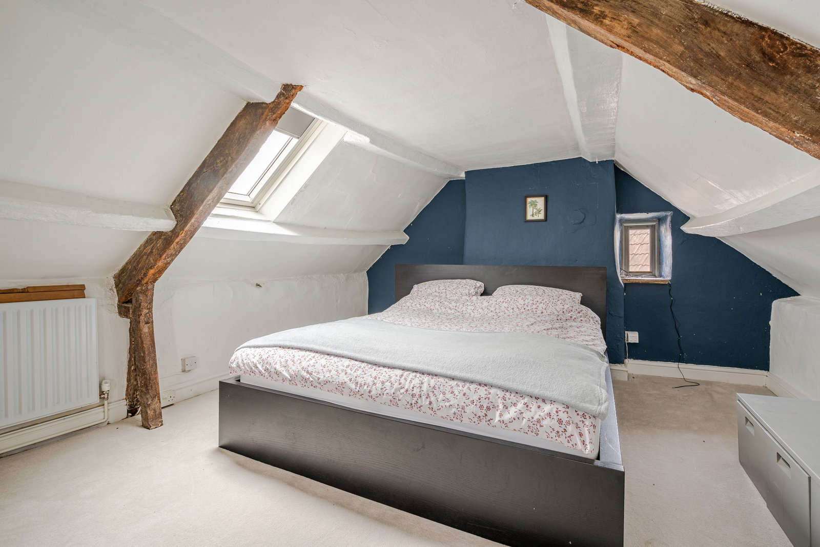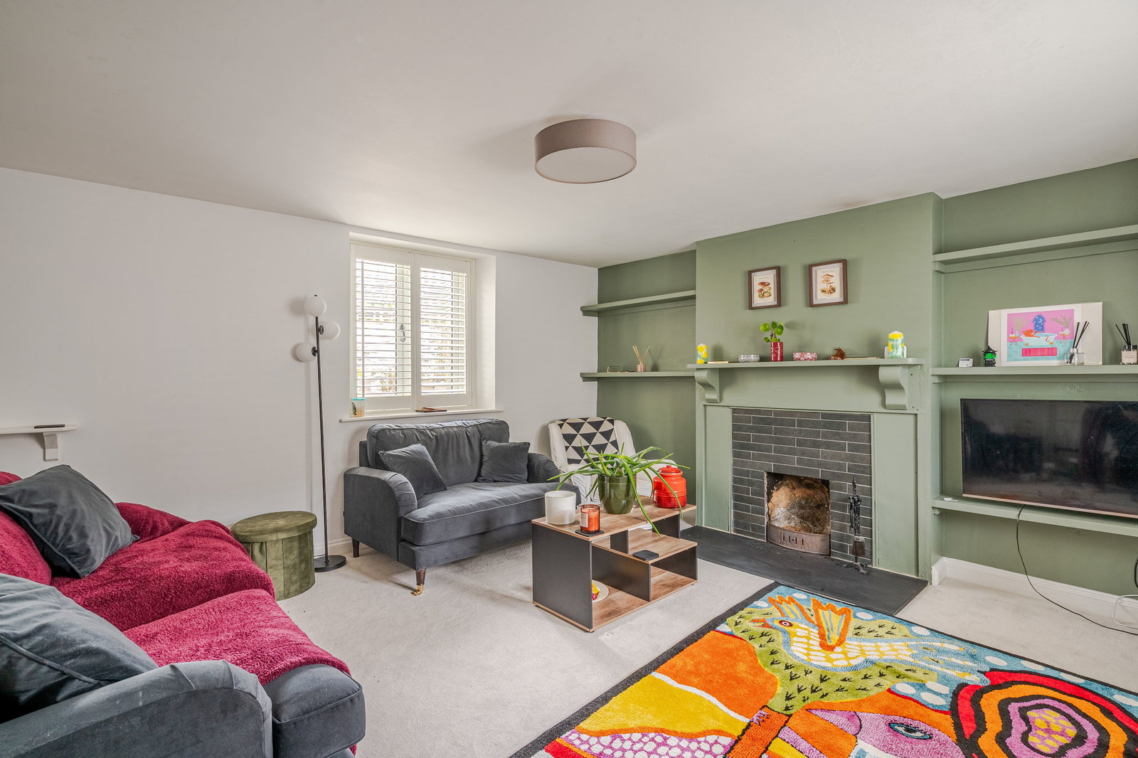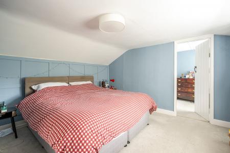 The ground floor opens to an entrance hall, complete with convenient understairs storage and a downstairs WC. A traditional living room at the front boasts an open fireplace. The heart of the home lies at the rear, where the open-plan kitchen/dining room features bi-fold doors that seamlessly connect to the garden, ideal for indoor-outdoor living. The kitchen is well-appointed with a breakfast bar, an integrated dishwasher, and a washing machine. On the first floor, there are comfortable double bedrooms, including the principal bedroom which benefits from an adjoining versatile dressing room. The bathroom provides a shower over the bath and a spacious storage cupboard. A further double bedroom is located on the top floor, showcasing characterful beams.