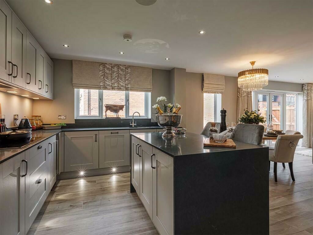 - Open-plan kitchen, dining, living area on the ground floor.