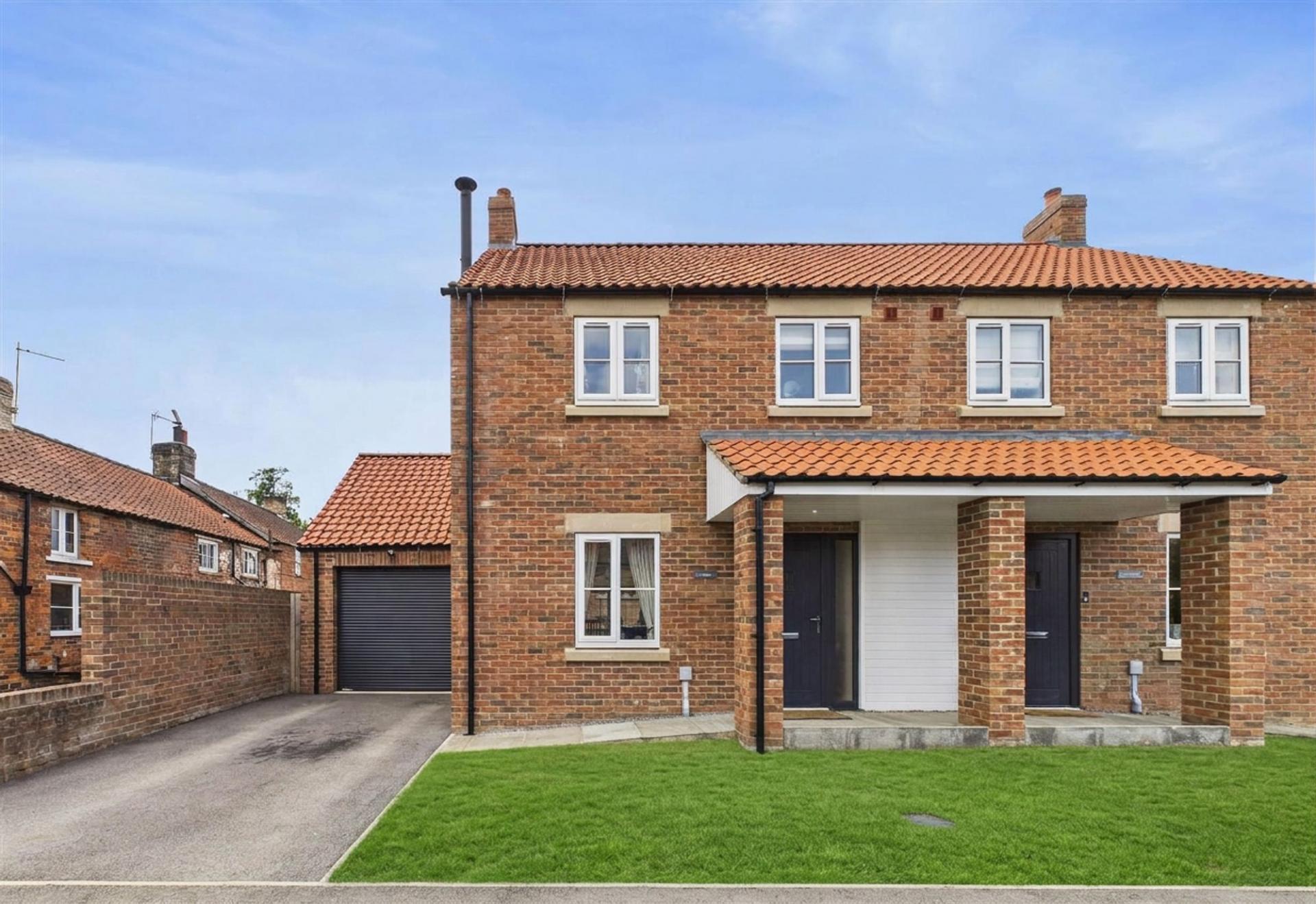 This beautifully finished three-bedroom, two-bathroom home in Brawby, Malton, combines modern design with a warm, inviting feel, enhanced by thoughtful features that bring both comfort and efficiency. The property benefits from an air source heat pump providing sustainable, energy-efficient heating and an electric garage door offering convenience and ease of access.