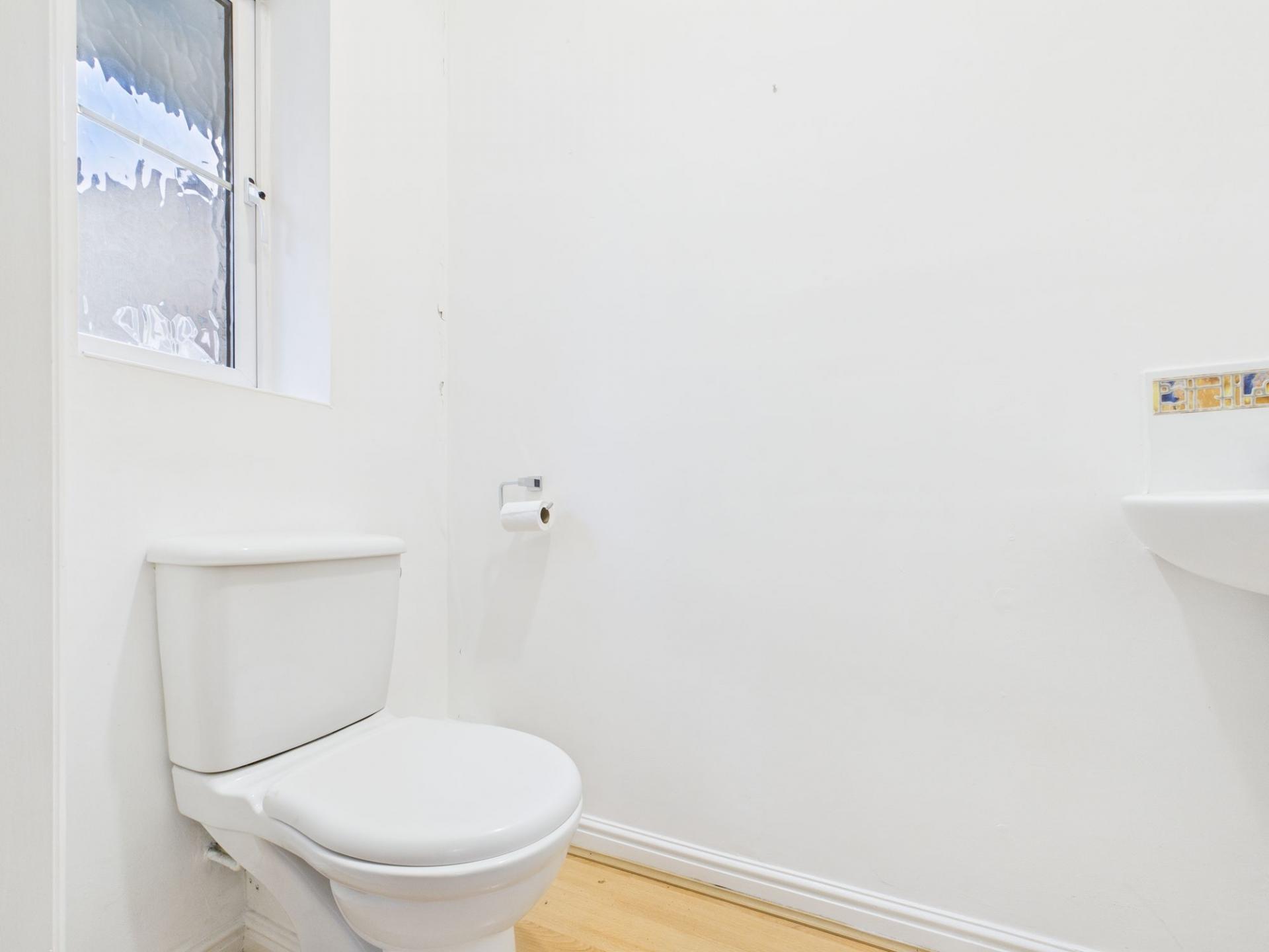 Upon entering the property, you are welcomed into a central hallway which provides access to the principal ground floor rooms. To the right, the spacious lounge benefits from windows to both the front and side elevations, allowing an abundance of natural light to flood the room and create a bright, comfortable living space. To the left of the hallway lies the kitchen/dining room, thoughtfully laid out with ample storage and fitted with an electric oven and induction hob, along with space for integrated appliances. There is generous room for a dining area, making it perfect for both everyday living and entertaining. A door from the kitchen leads directly out to the patio area, providing a seamless connection between indoor and outdoor space. Completing the ground floor is a convenient guest cloakroom.
