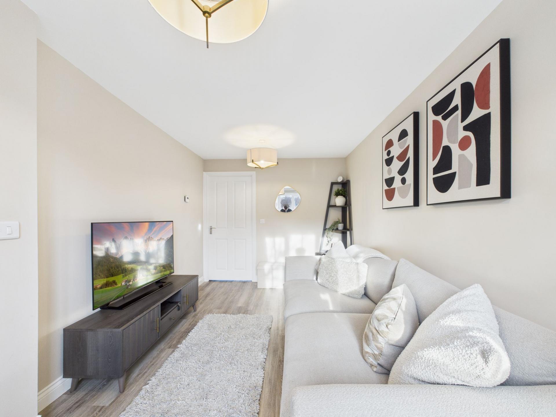 Three-bedroom semi-detached house with off-road parking, bright interiors, built-in storage, front and rear gardens, and...
