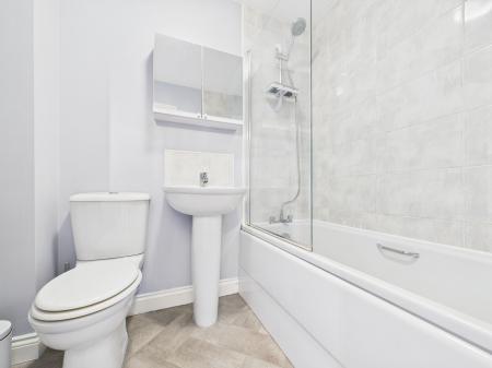 Upstairs, the property offers two generous double bedrooms, both well proportioned and filled with natural light. The family bathroom is fitted with a bath and overhead shower, providing a practical and comfortable space for everyday use.