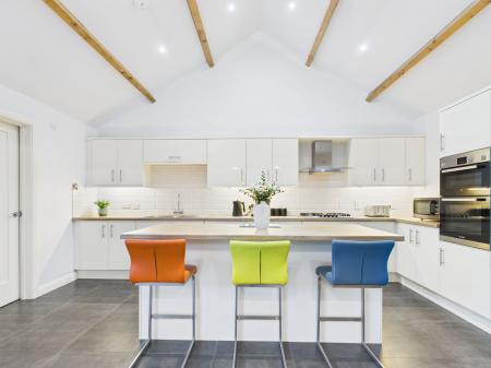 - Impressive 12m open-plan living kitchen with vaulted ceiling and exposed oak beams