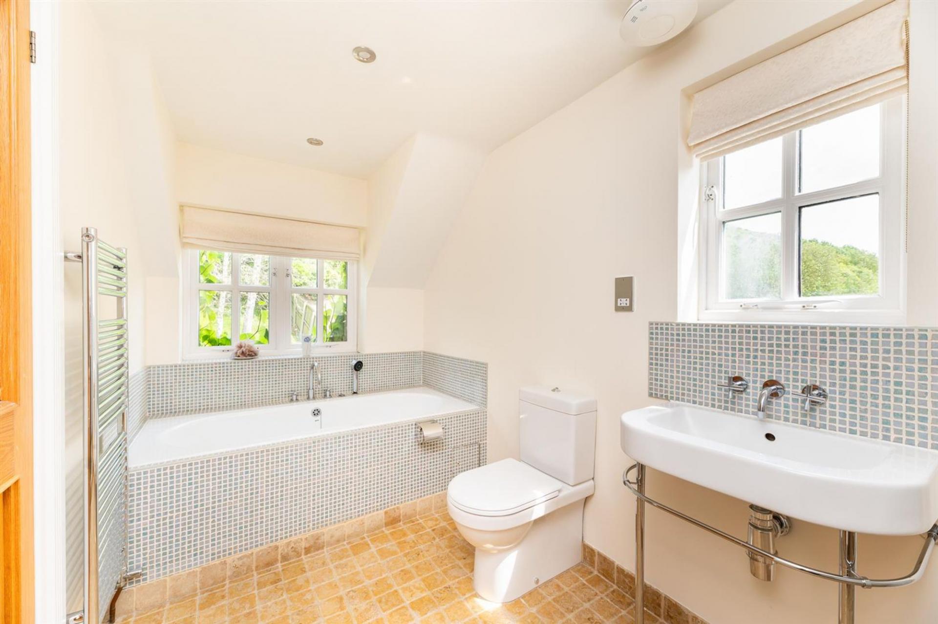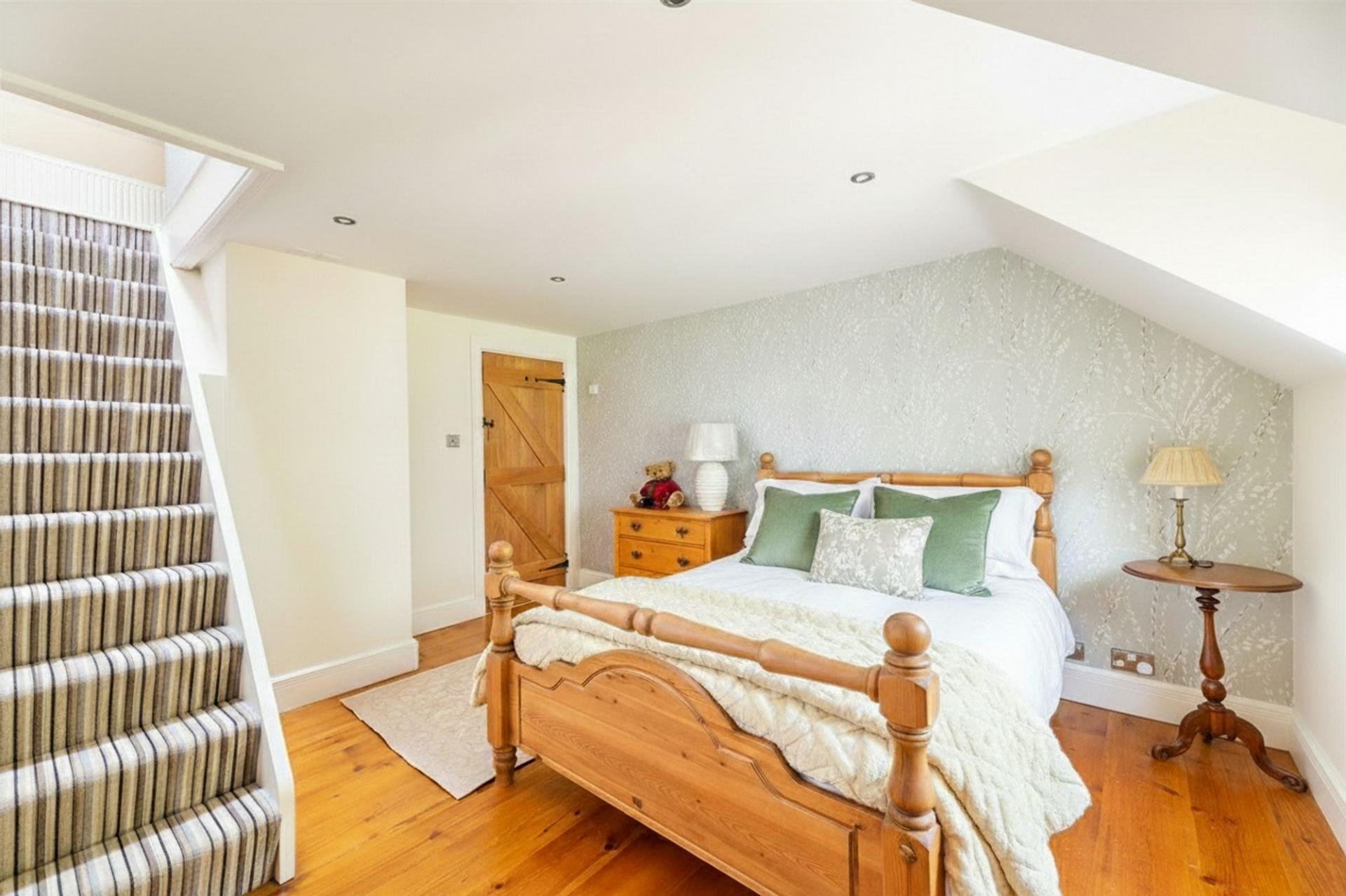 Two separate staircases provide access to upstairs: on the first floor are four double bedrooms, three of which enjoy superb en-suite facilities. The master bedroom also boasts a dressing room, while the third bedroom gives access to a sitting room and a separate kitchen providing the perfect accommodation for extended family or visitors. A four piece family bathroom completes the first floor. The second floor houses an attic space and dressing room with two large walk-in wardrobes.
