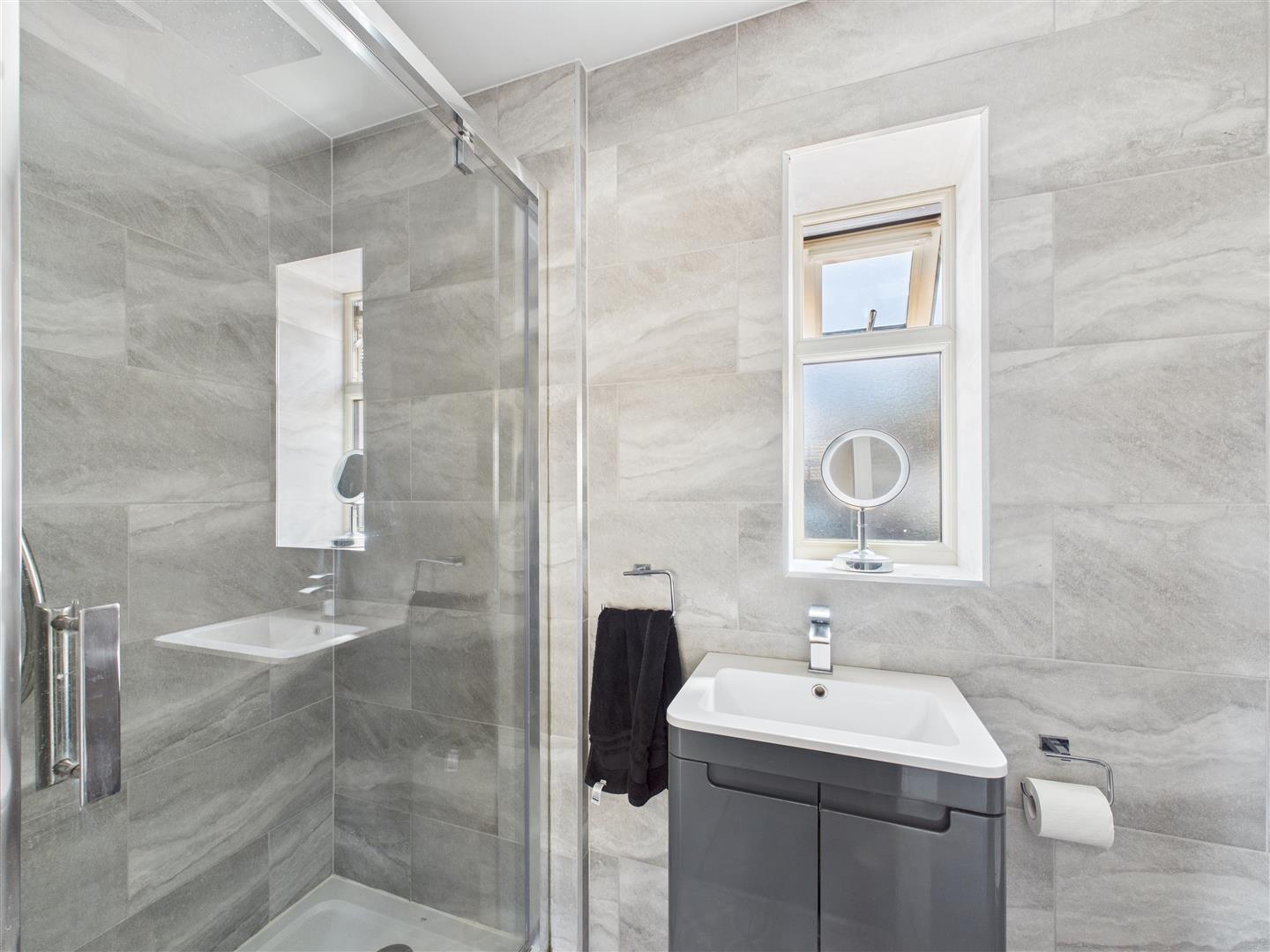 - Stylish family bathroom with roll-top bath and rainfall shower