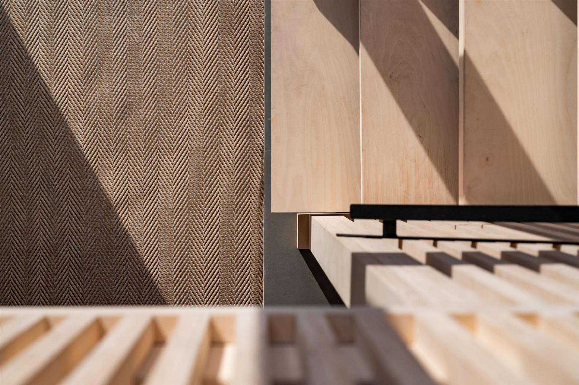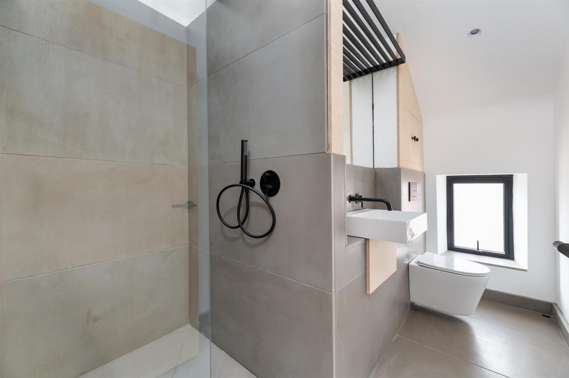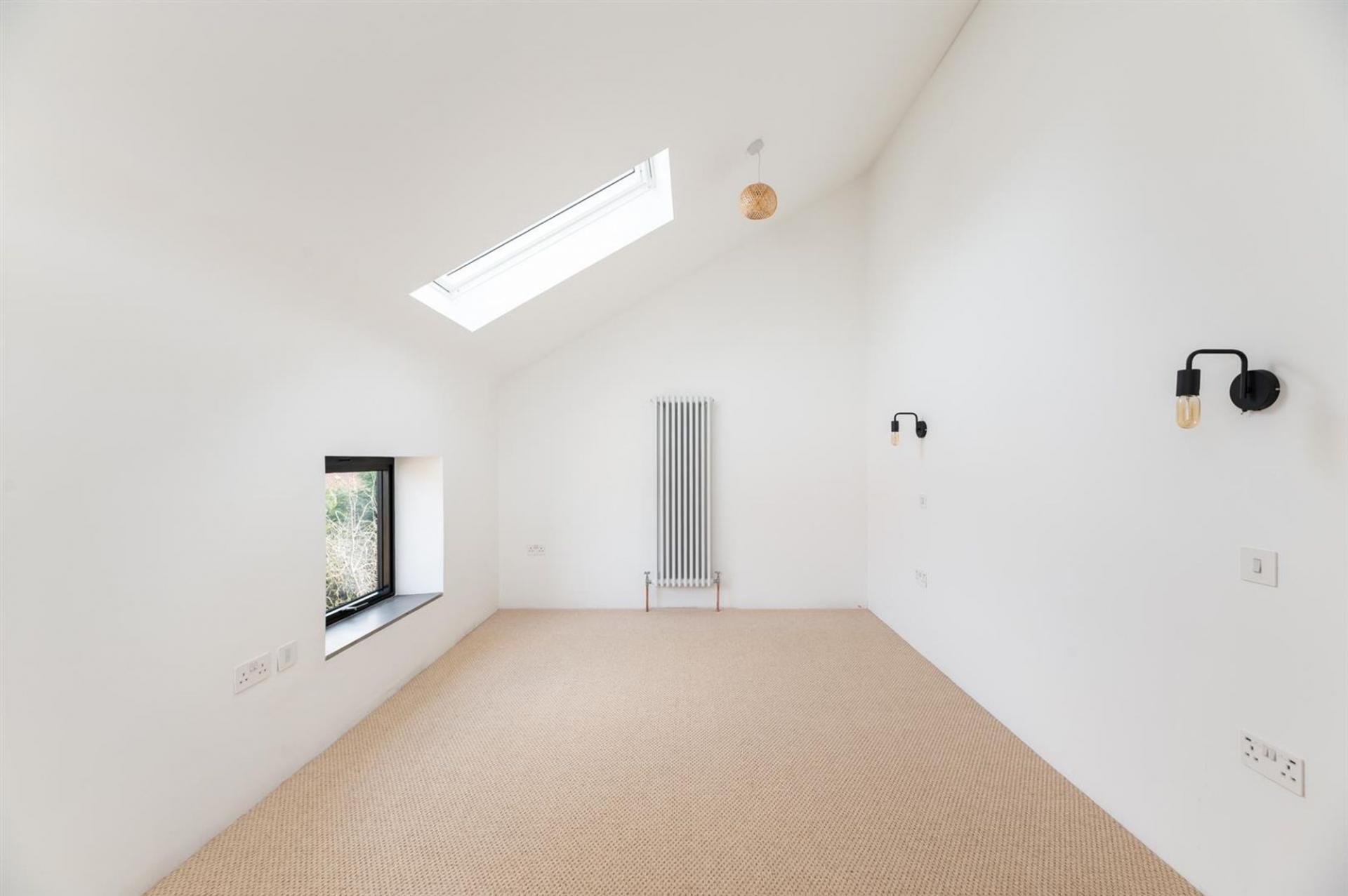 The sitting room and bedrooms are elegantly finished with carpets. A floating staircase leads to the upper level, where the state-of-the-art bathroom boasts a bespoke bath, rainfall shower with timber beam detailing, and matt black sanitary ware for a striking contemporary look. The master bedroom is a true sanctuary, featuring an ensuite with a sliding barn door and a walk-in wardrobe.