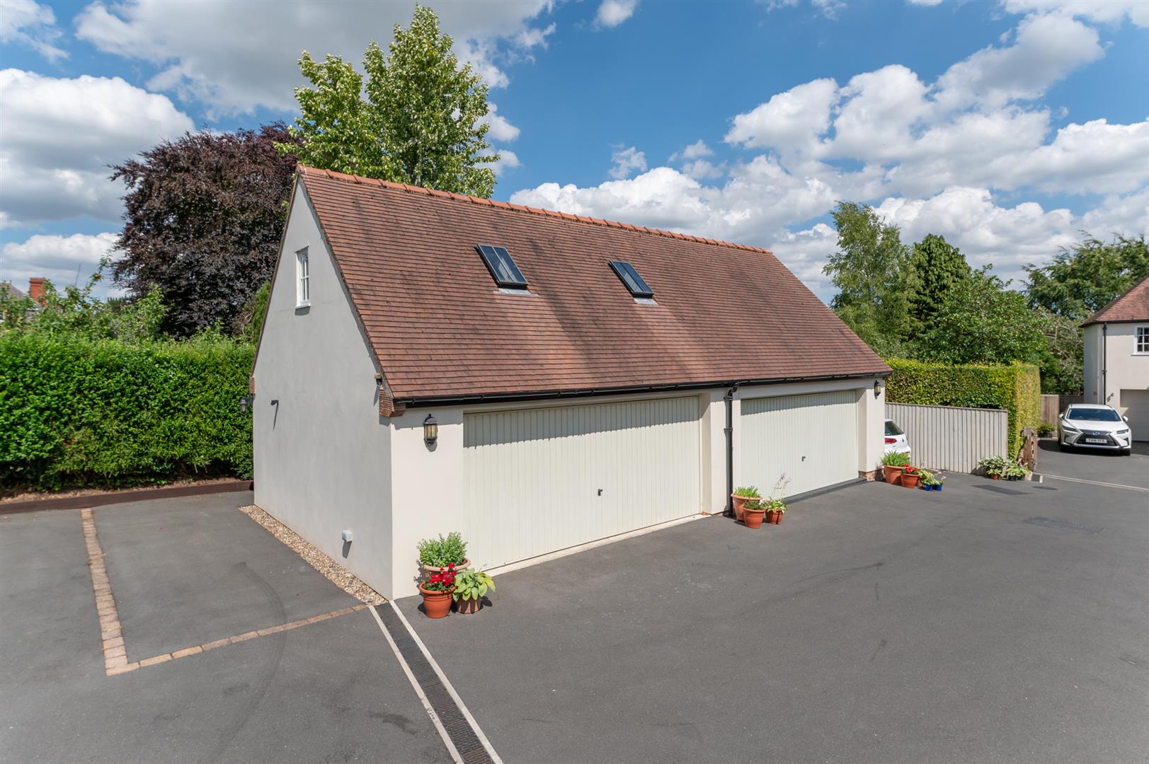 - Double garage with room above and ample driveway parking for up 6 vehicles