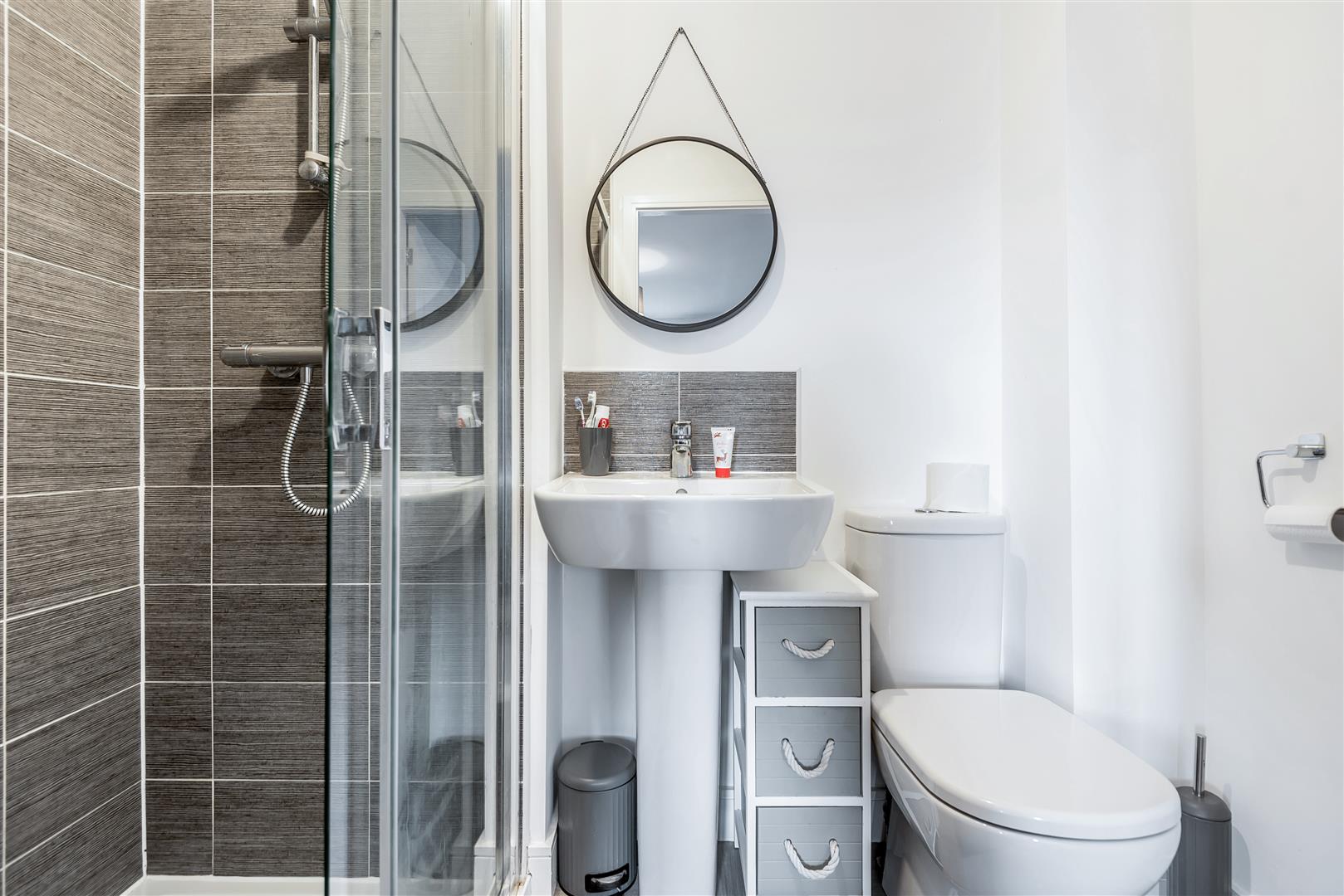 Master En-Suite - Low flush WC, wash hand basin, enclosed shower, extractor fan.