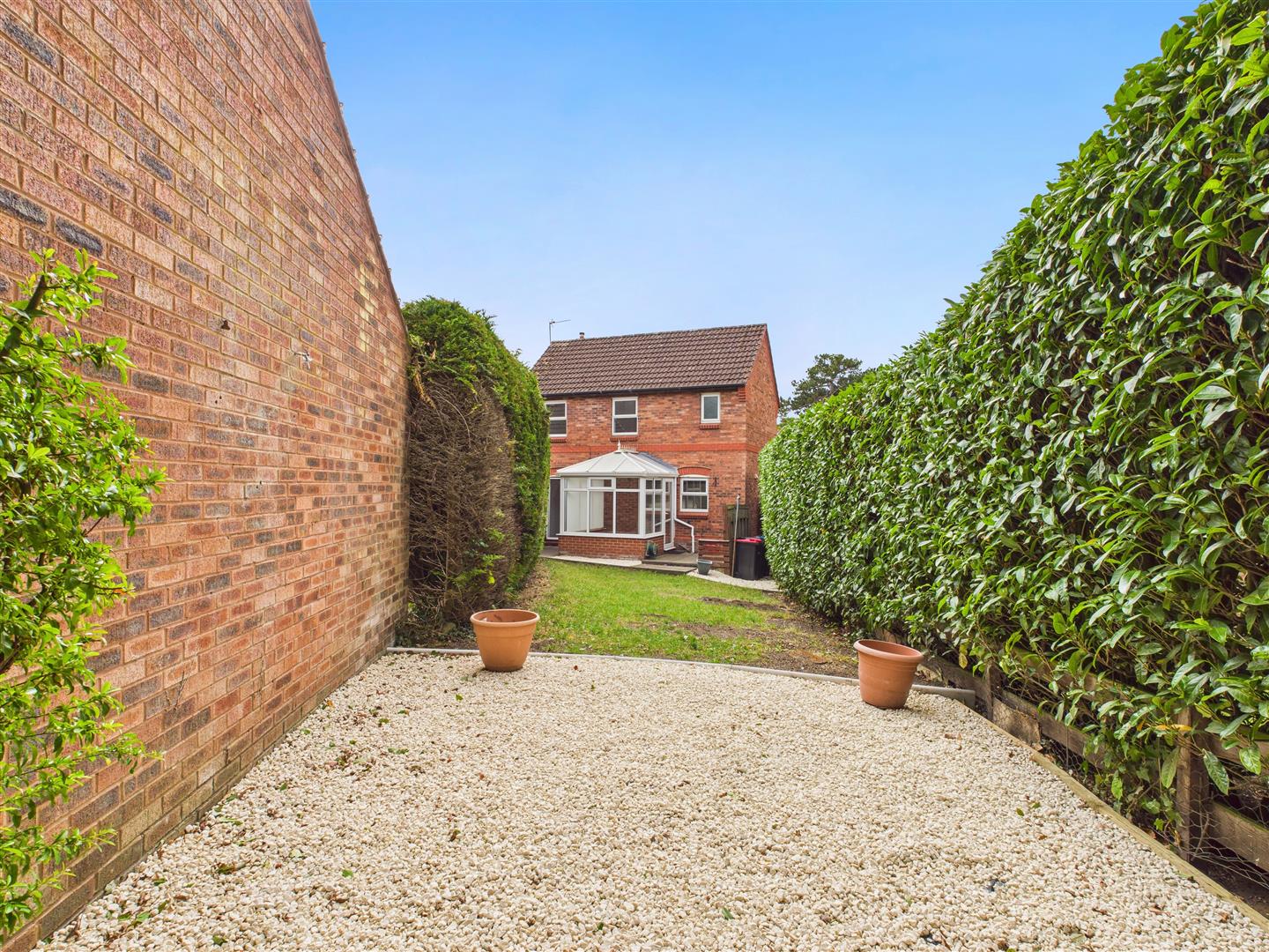 Driveway located to the front of the property providing off-street parking and giving access to the detached garage. Gated pathway at the side of the house leading into the enclosed lawned garden with mature shrub and trees, paved patio area for entertaining and garden shed.