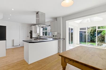 With glass roof with fitted blinds. Bifold doors opening onto the patio. Wall length feature window over looking the garden. Nine spot down lights. Electric radiator. Wooden laminate flooring.