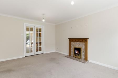 With two ceiling light points. Bay window to the front aspect with fitted blinds. Radiator. Fireplace with a marble hearth and wooden mantlepiece. TV point. Double glass doors opening into...