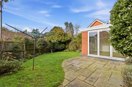 A delightful rear garden with paved patio offering a relaxed seating area in front of a garden laid to lawn with deep and well stocked borders. Outside water supply. Paved path leading to gated side access.