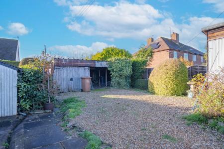 As previously mentioned the property has a good sized foregarden that leads around to the left of the property and a paved pedestrian path continues past the former vegetable beds and leads to the rear of the property where there is a gravelled parking area with gated vehicular access from Sherridge Road. The drive leads to a GARAGE BLOCK 20'6 x 16'2 that is in need of some attention and currently divided into an open bay area and enclosed garage with double doors. There is a further detached WORKSHOP/STORE of wooden construction. Access can also be gained to the left of the property from the foregarden to the driveway.