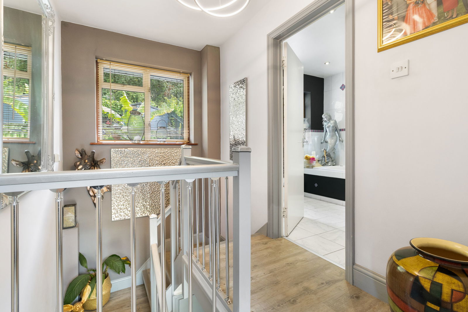To the first floor, wood effect flooring, double glazed window to the front and rear with views to the front over the valley, two ceiling light fittings, radiator and doors to all rooms.