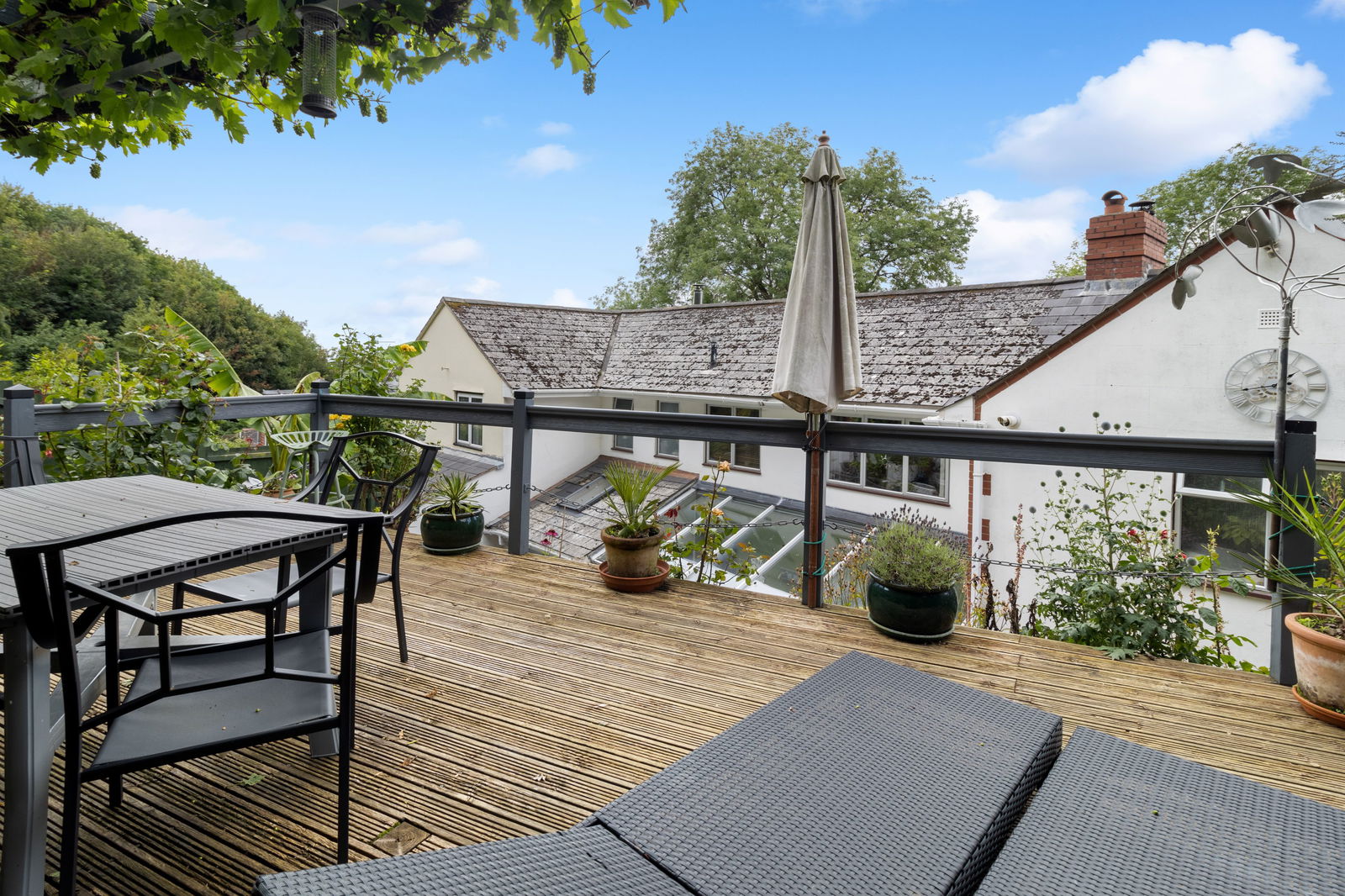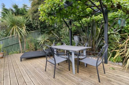 On the first tier there is a lovely patio area with steps up to a further seating area. At the top of the garden there is a large decked terrace with a SHED and a covered seating area.