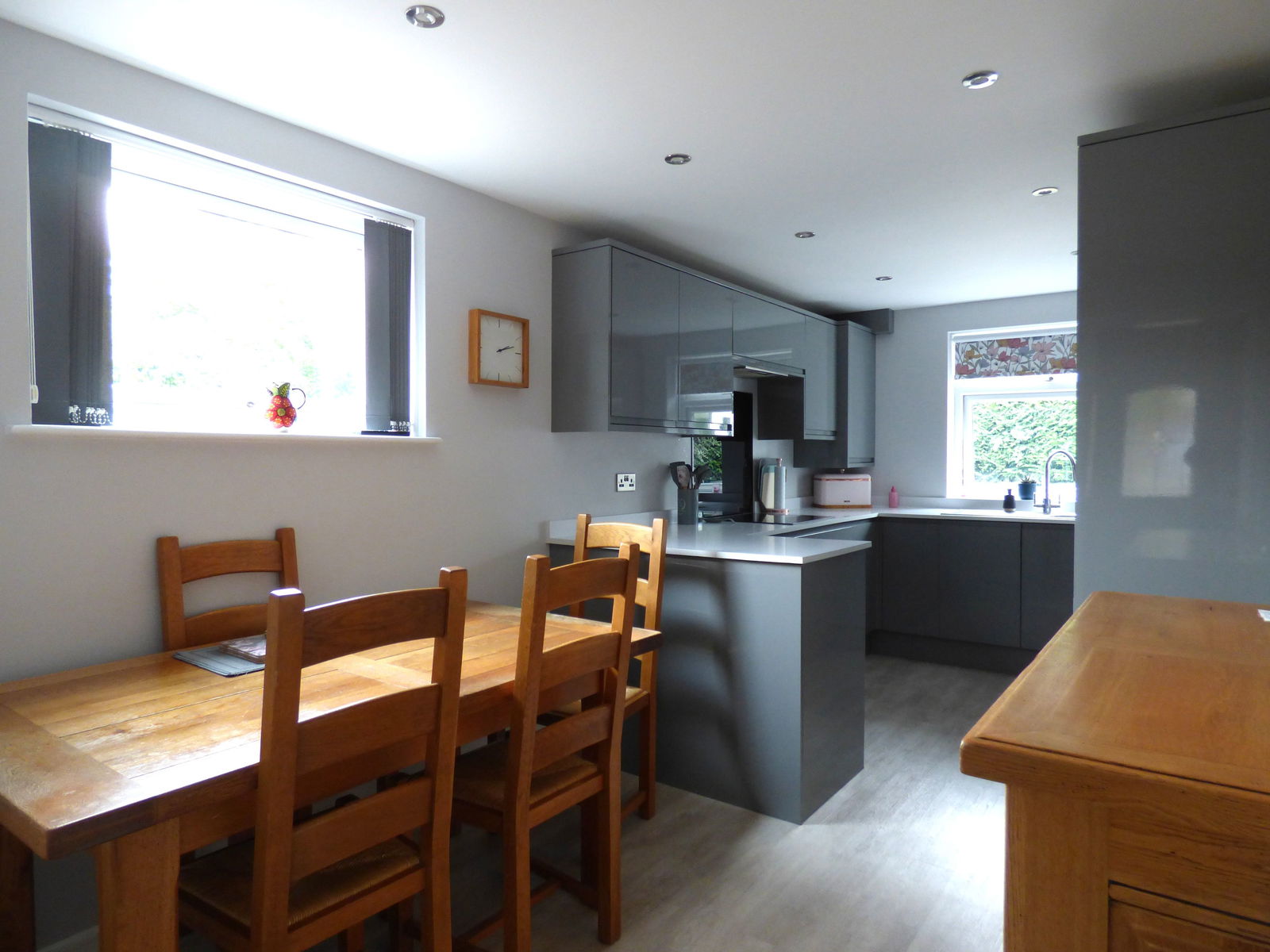 The initial area being given over to the dining space with double glazed window to side and inset LED downlighters. Radiator. This area flows through to the kitchen that was refitted approximately two years ago and offers a range of drawer and cupboard base units, granite effect worktops and splashbacks with matching wall units. There is a range of integrated appliances to include an electric HOB with splashback and extractor over, eye level DOUBLE OVEN one of which incorporates a MICROWAVE. Full height FRIDGE FREEZER and slimline DISHWASHER. Set under the double glazed that overlooks the rear garden is a stainless sink unit with mixer tap and drainer. Inset LED downlighters.
