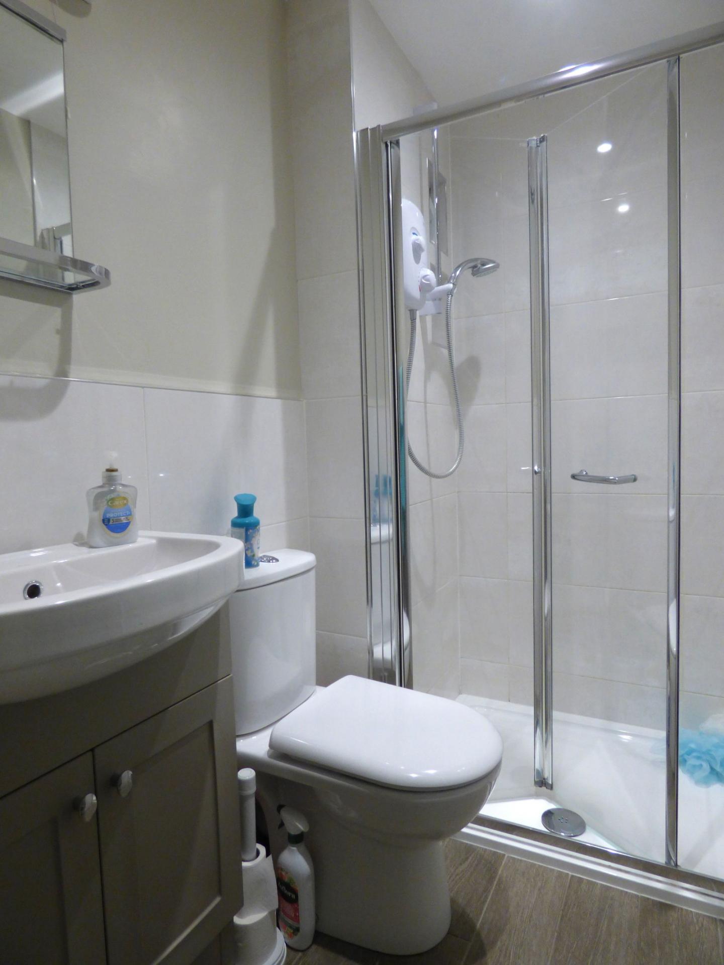 Recently refitted with a white low level WC and vanity wash hand basin with mixer tap and cupboard under. Walk-in shower enclosure with electric shower over and useful shelf recesses. Light with shaver point over sink. Splashbacks in complimentary ceramics and a chrome wall mounted heated towel rail. Inset LED downlighters and extractor fan.