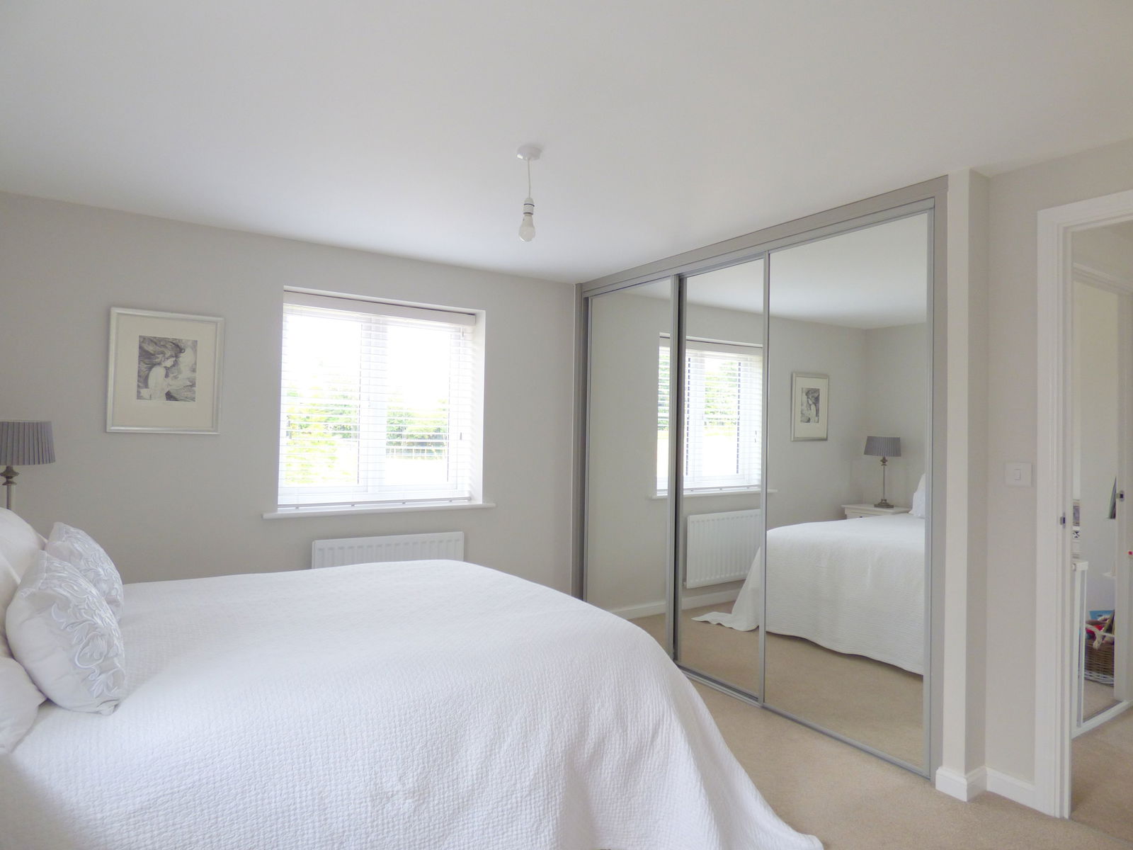A lovely dual aspect room with double glazed windows to side and front.  Ceiling light point.  Fitted wardrobes including hanging and shelf space.  Radiator and door leading through to