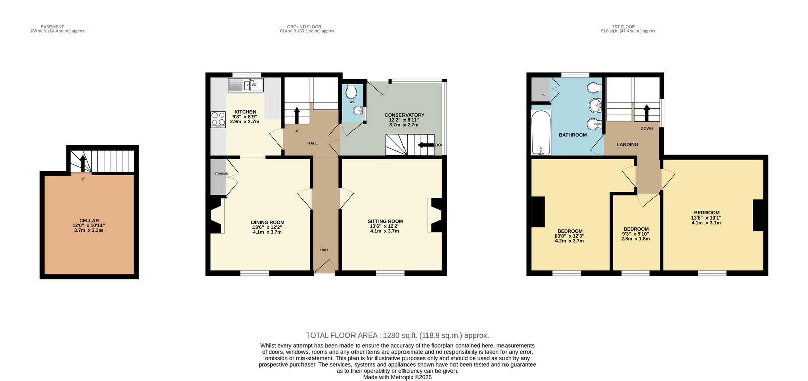 Built of brick and UPVC construction, tiled floor, stairs to cellar, ceiling light fitting, doors to