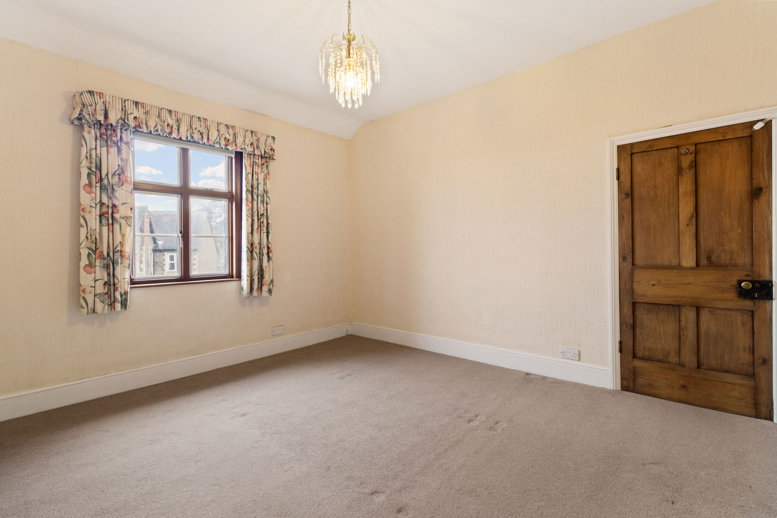 Carpet, pendant light fitting, double glazed window to the front, radiator.