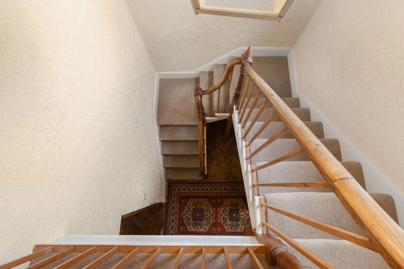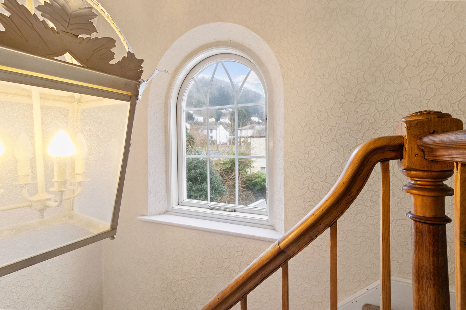Double glazed window on stairs, pendant light fitting, carpet, doors to all rooms, radiator.