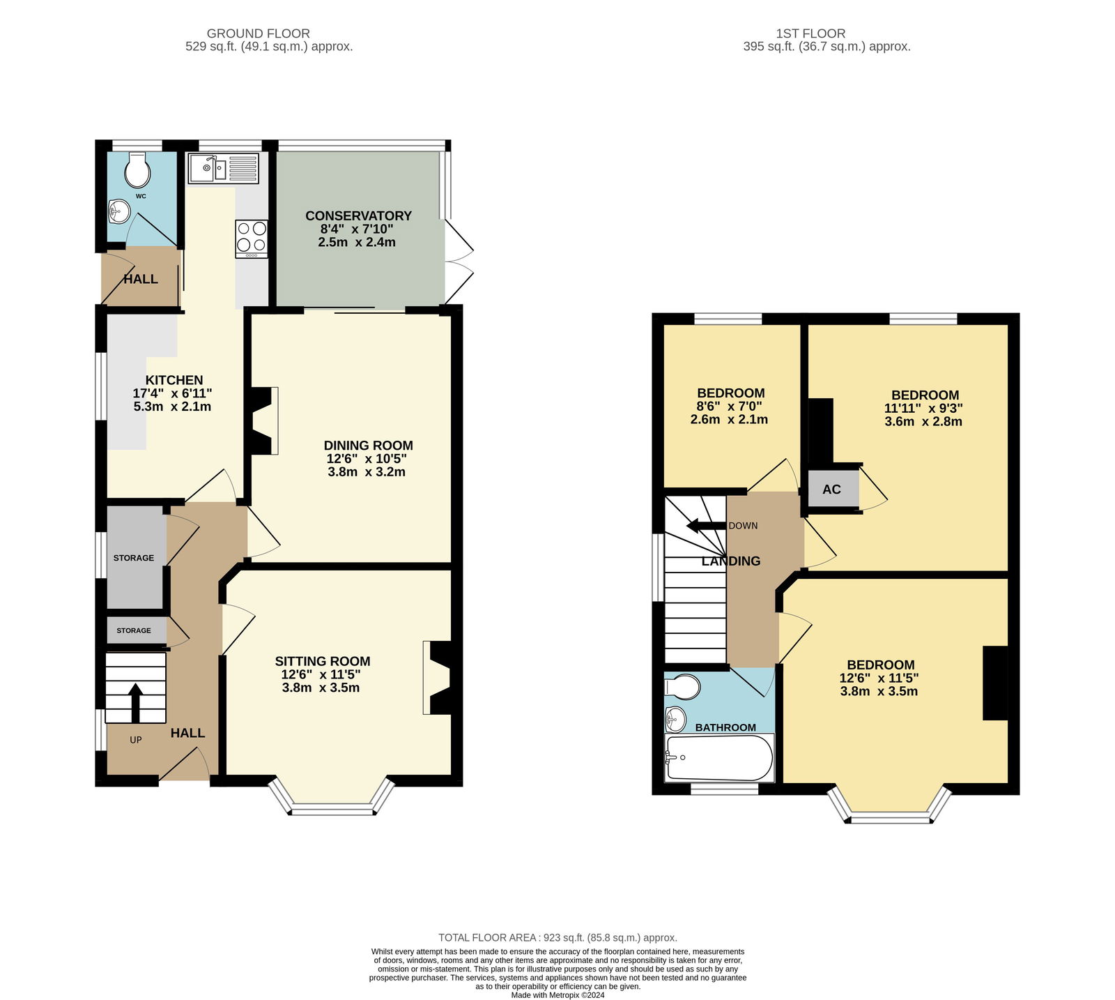 Bedroom 3 2.63m (8ft 6in) x 2.14m (6ft 11in)