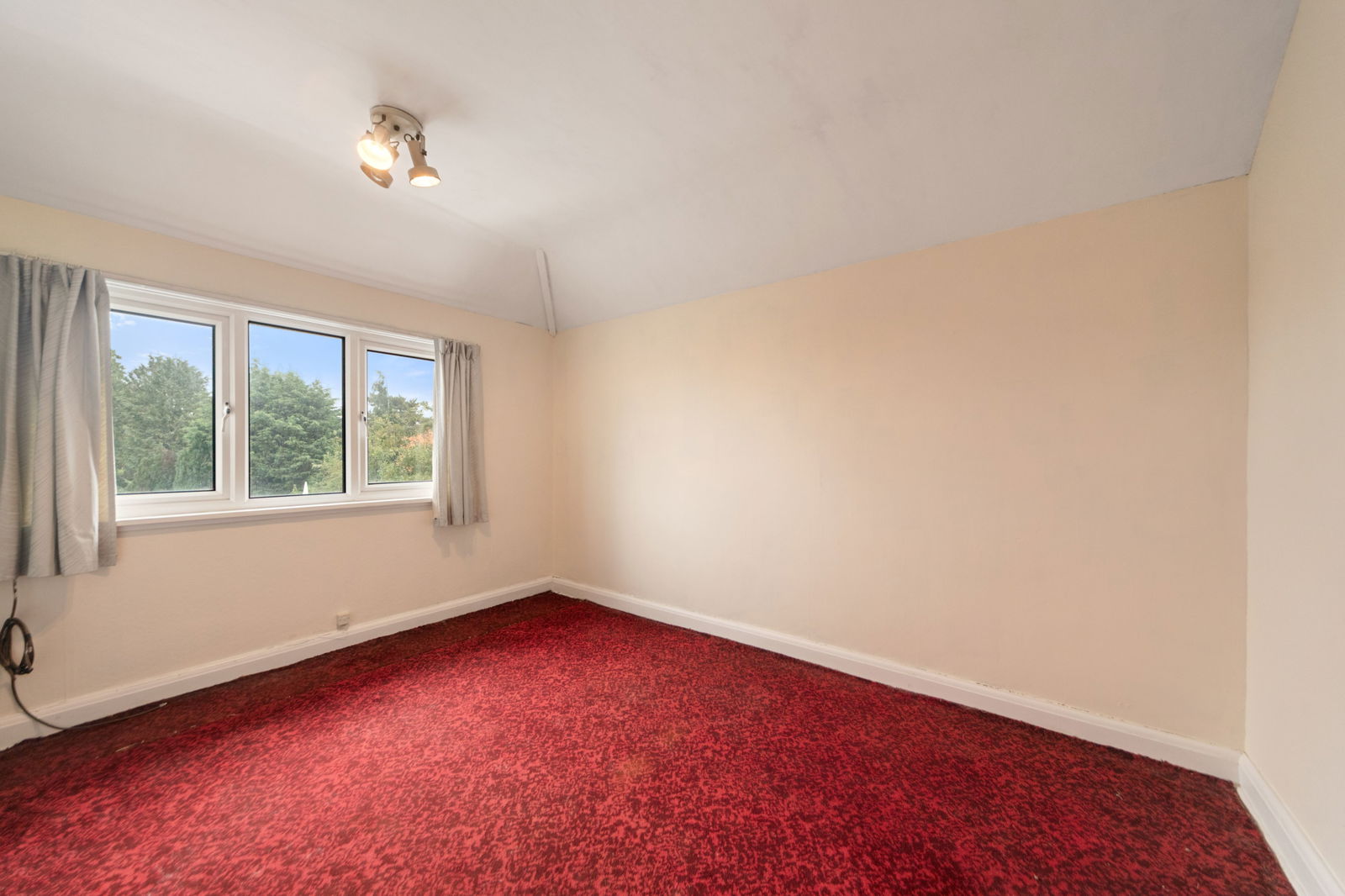 Carpet, pendant light fitting, gas fire (condemned), sliding patio door to