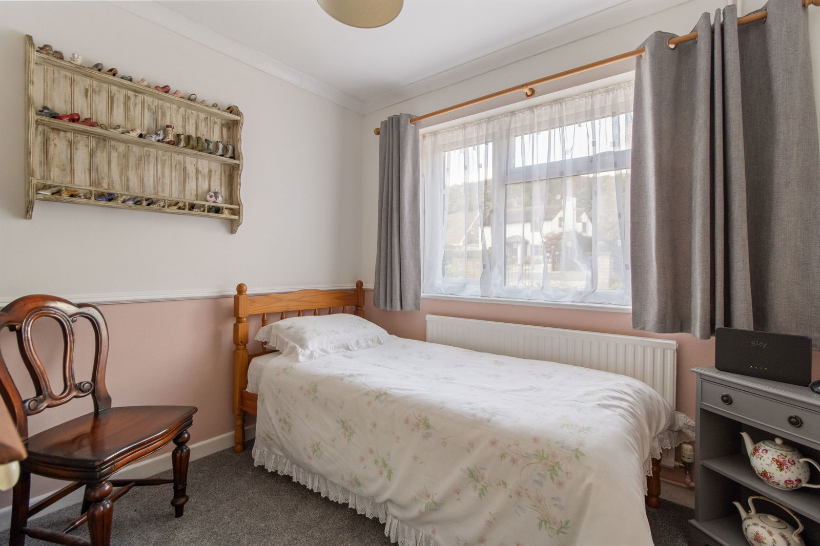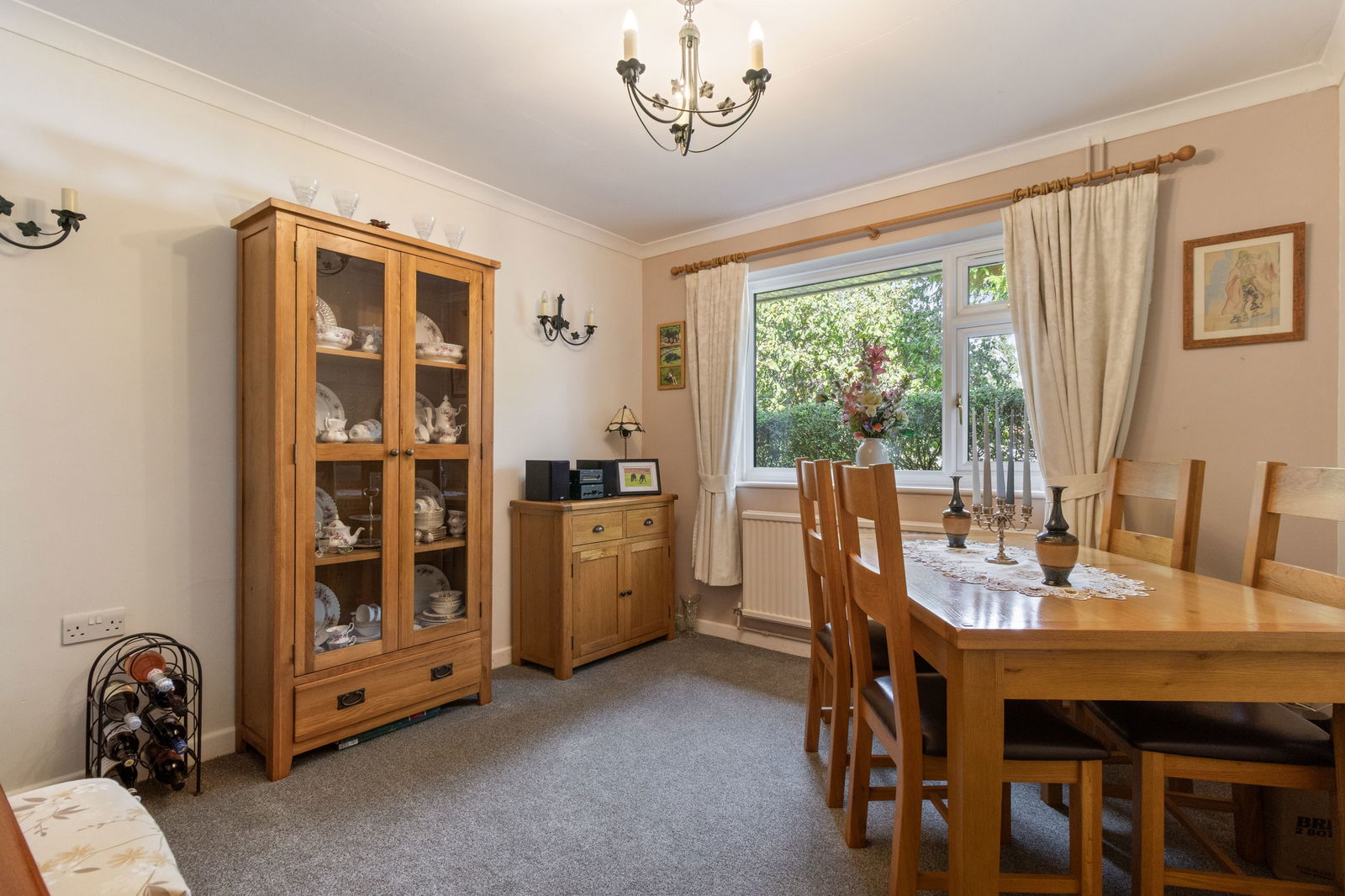 Radiator, ceiling light fitting, triple glazed window to side. Carpet.