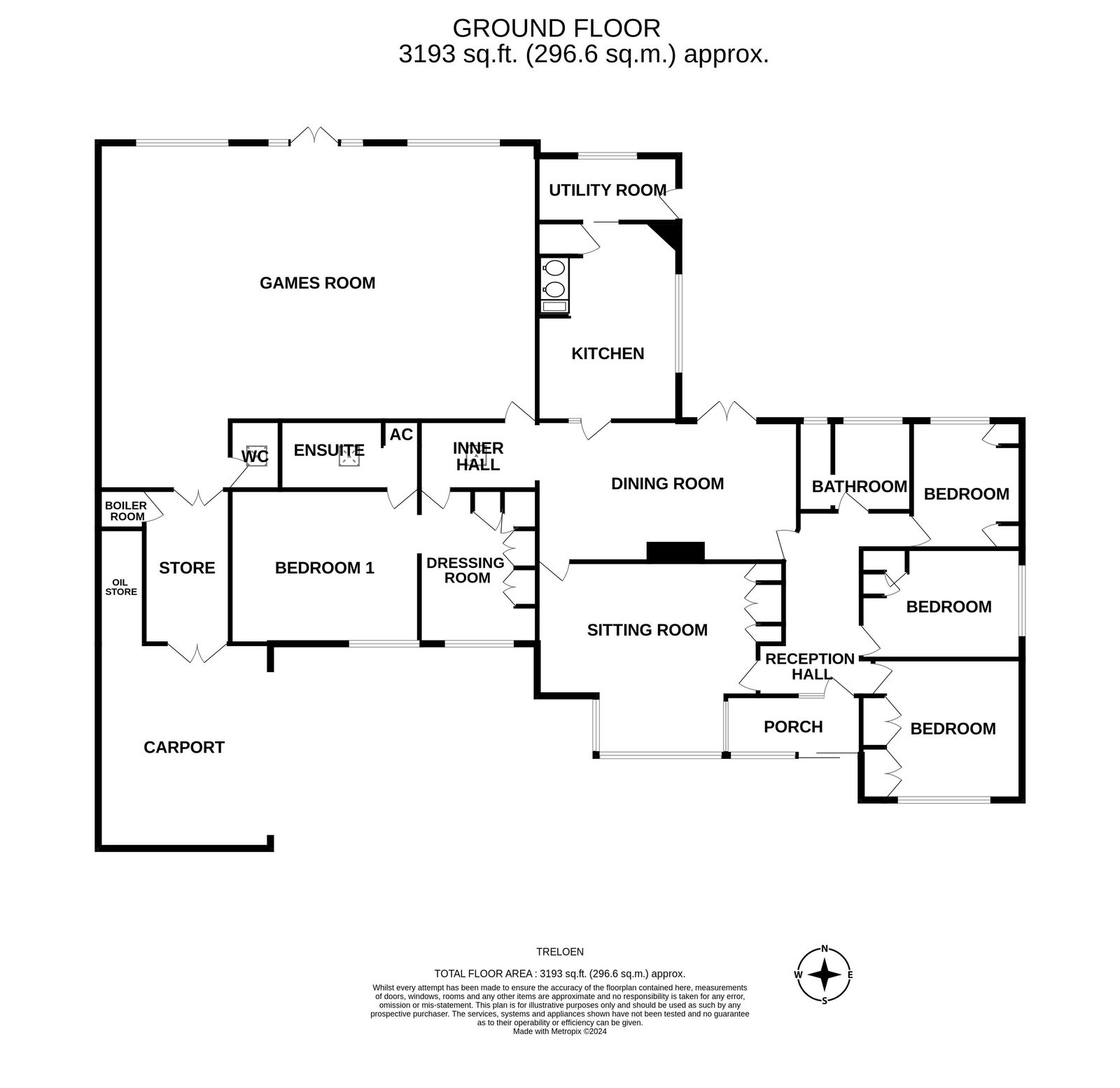Accessed from the games room via double doors and having further double doors leading out to the carport.  A useful area with door to boiler room housing the floor mounted boiler.