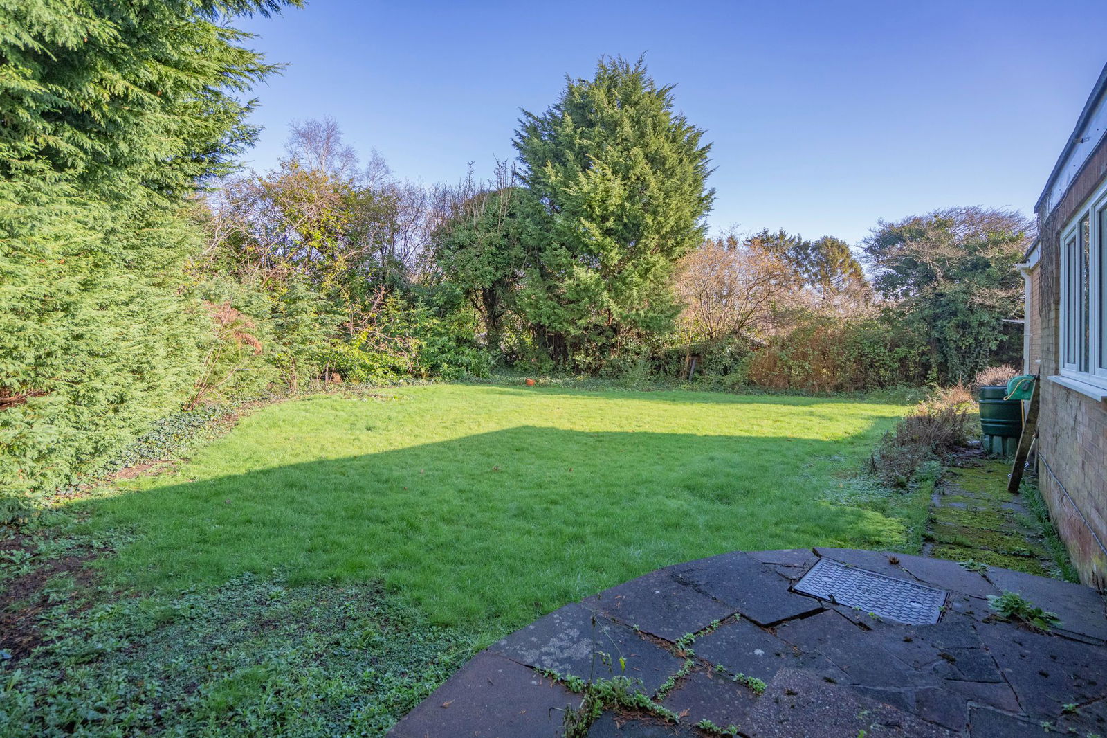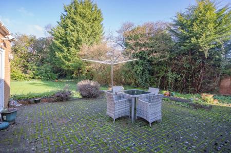 To the rear of the property a block paved patio extends away from the property or a couple of steps and a gentle sloped path leading down to the lawn area enclosed by mature beds and specimen trees with the area being enclosed by hedged and fenced perimeter with gated pedestrian access to front.   The garden further benefits from an outside water tap.