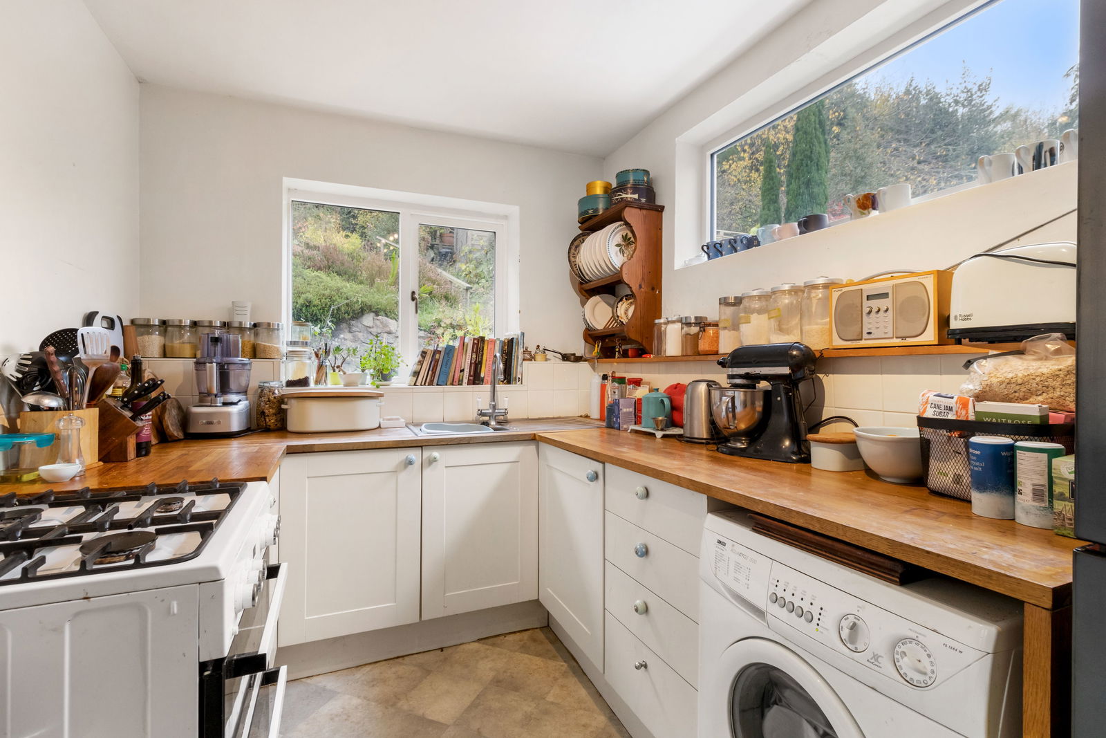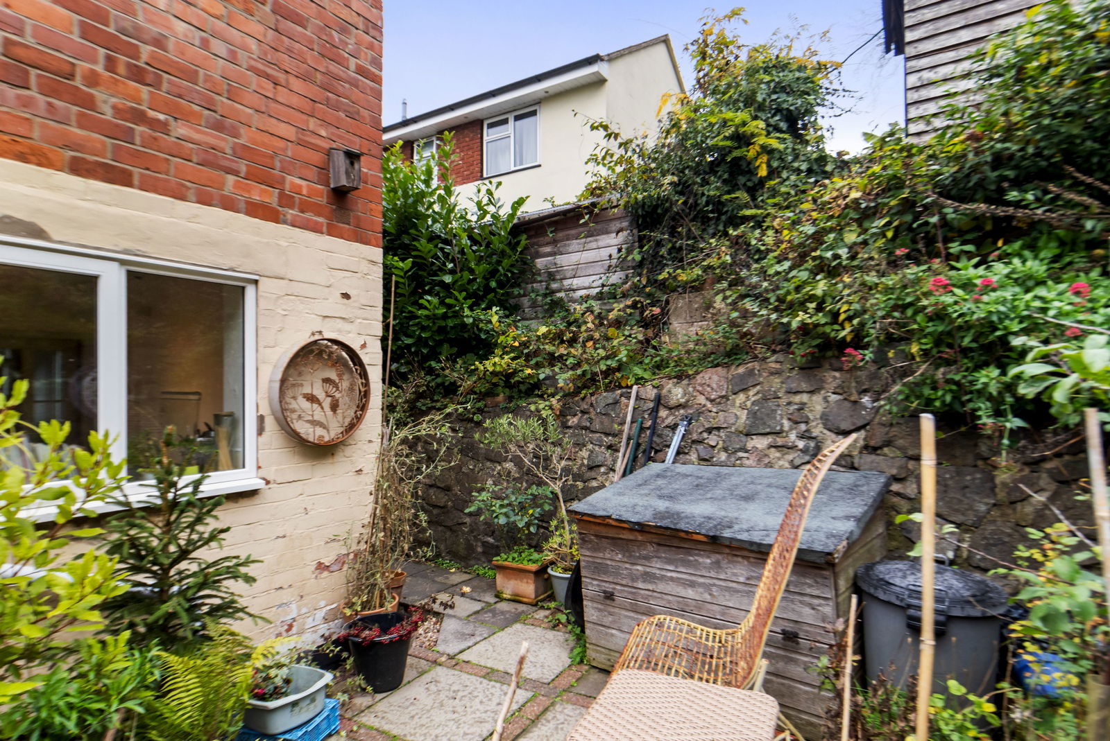 To the rear is a paved patio before a well stocked terraced garden with shared access via the neighbouring garden. Steps up through the terraces with far reaching views from the highest point.