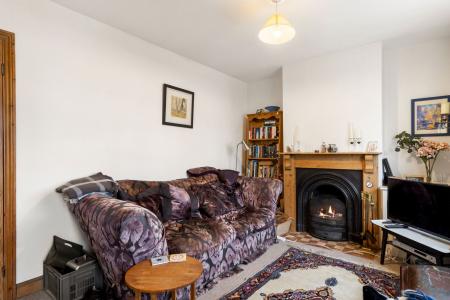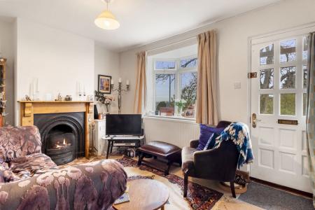 Entering via a single glazed wooden door into a sitting room with ceiling light point. Double glazed bay window to the front aspect. A cast iron fireplace with tiled hearth and wooden mantle piece. Radiator. Carpet. Door into...