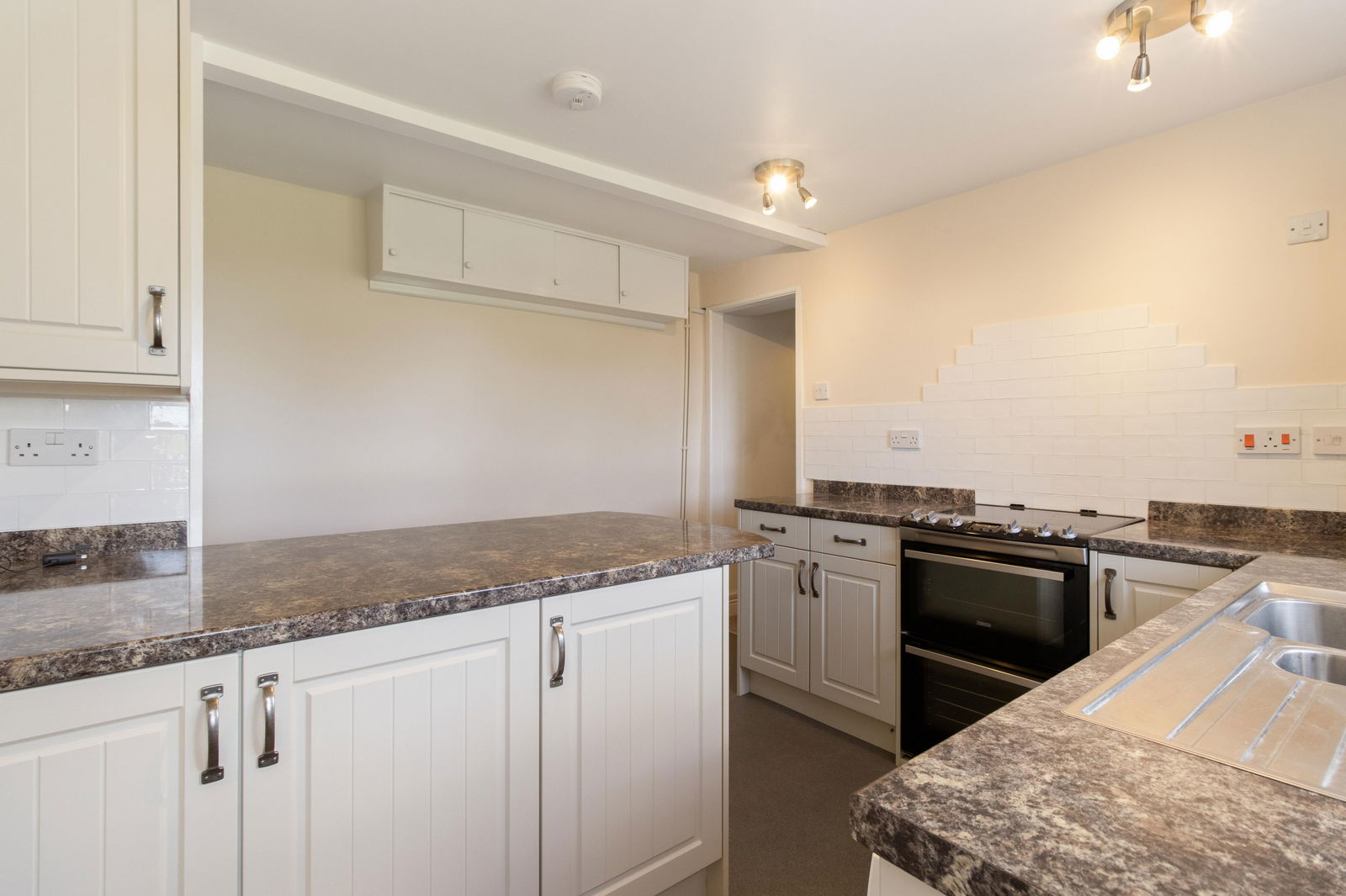 Vinyl flooring, range of base and eye level units with worktop over and breakfast bar seating. Zanussi cooker with double oven and Siemens dishwasher (both included in sale). Worcester Bosch boiler, partially tiled walls, three ceiling light fittings, cupboard housing fuse box and electric meter, double glazed window to rear with view over the valley and double glazed door to the garden and open to
