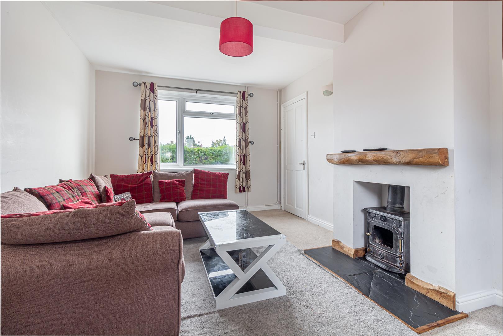 Radiator. Ceiling light point. Double glazed window to front aspect. Double glazed window to rear aspect. Two wall light points. Feature fireplace with log burner.