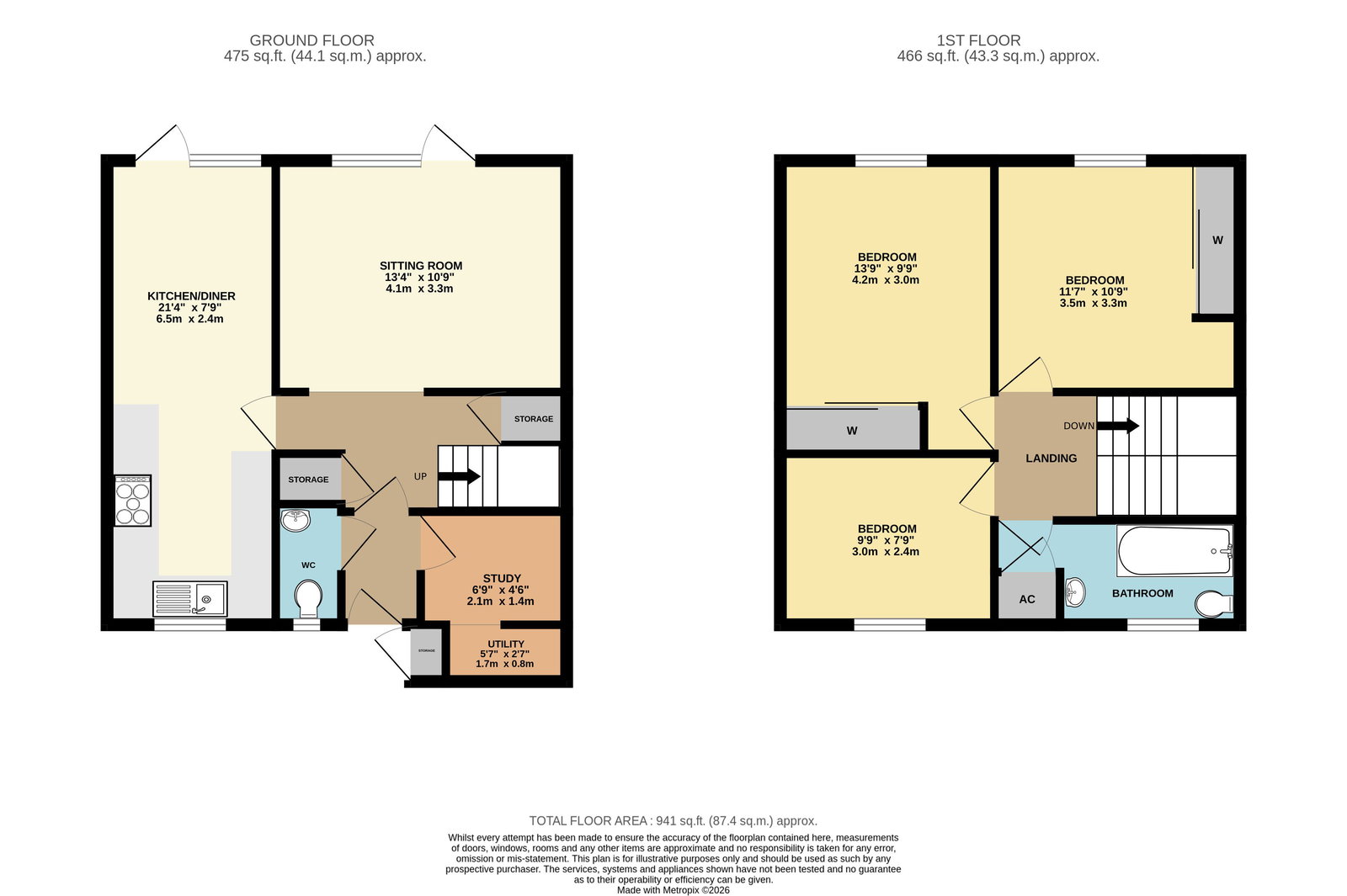 On the ground floor is a study, utility, cloakroom, open plan kitchen diner and sitting room both with doors to the garden. On the first floor there are three good size bedrooms and a family bathroom.