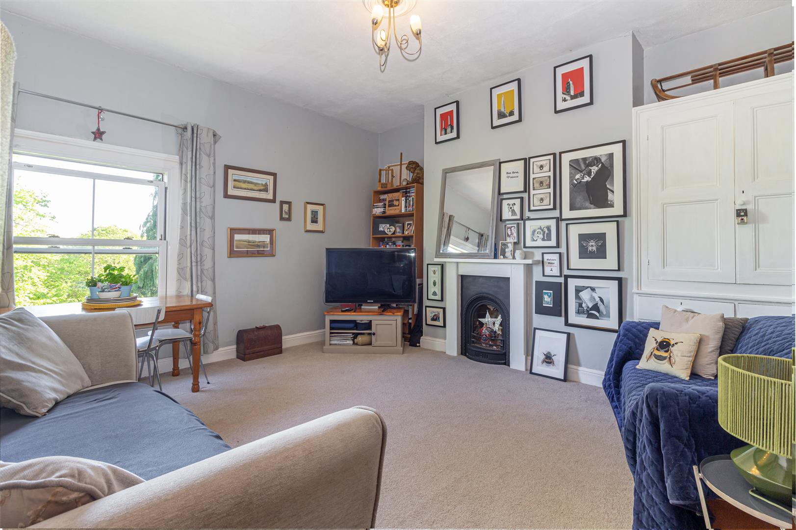 Having a large double glazed sash window to the front enjoying views overlooking the common, ceiling light point and ceiling rose, feature cast iron fireplace with wooden surround and mantel over, original style built in cupboard with drawers under, night storage heater. Carpet flooring.