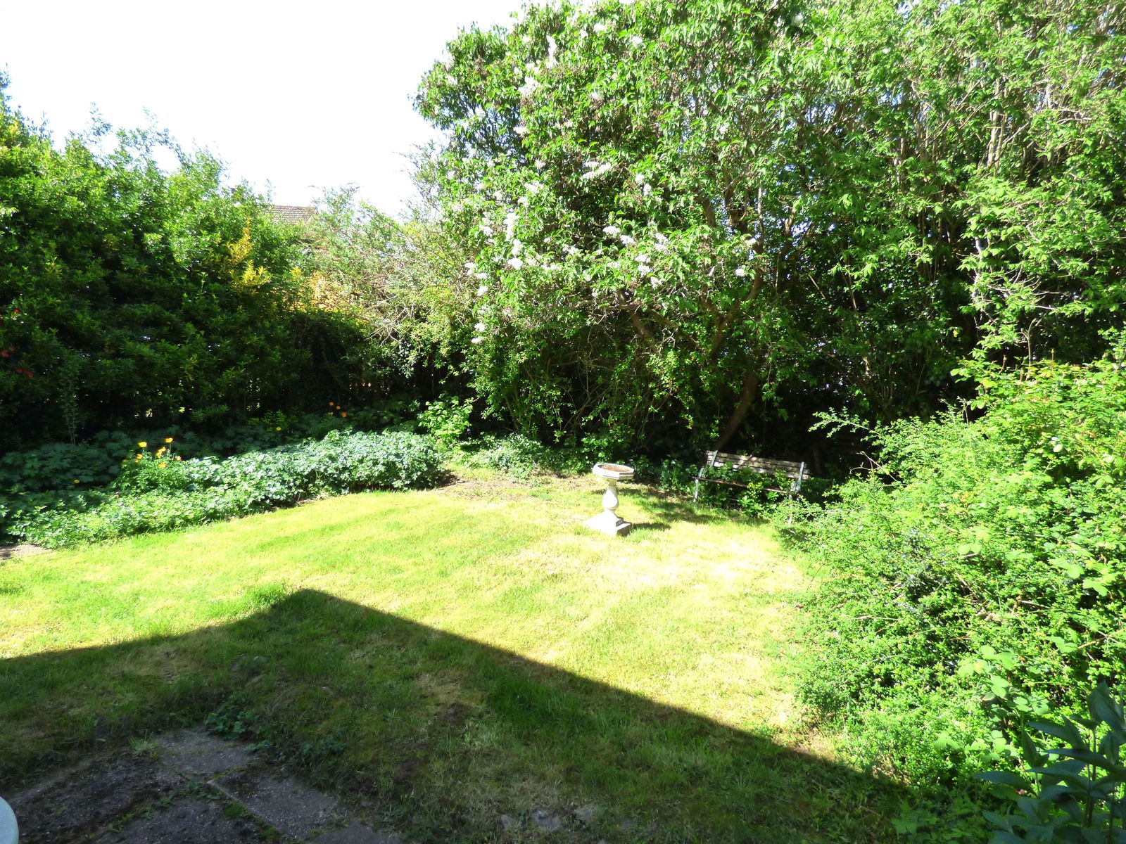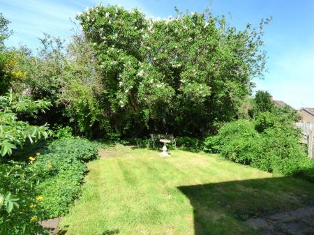 To the rear a paved patio area extends away from the property and leads to lawn with shrub beds. The garden is enclosed by fenced and hedged perimeter. There is a wooden SHED.
