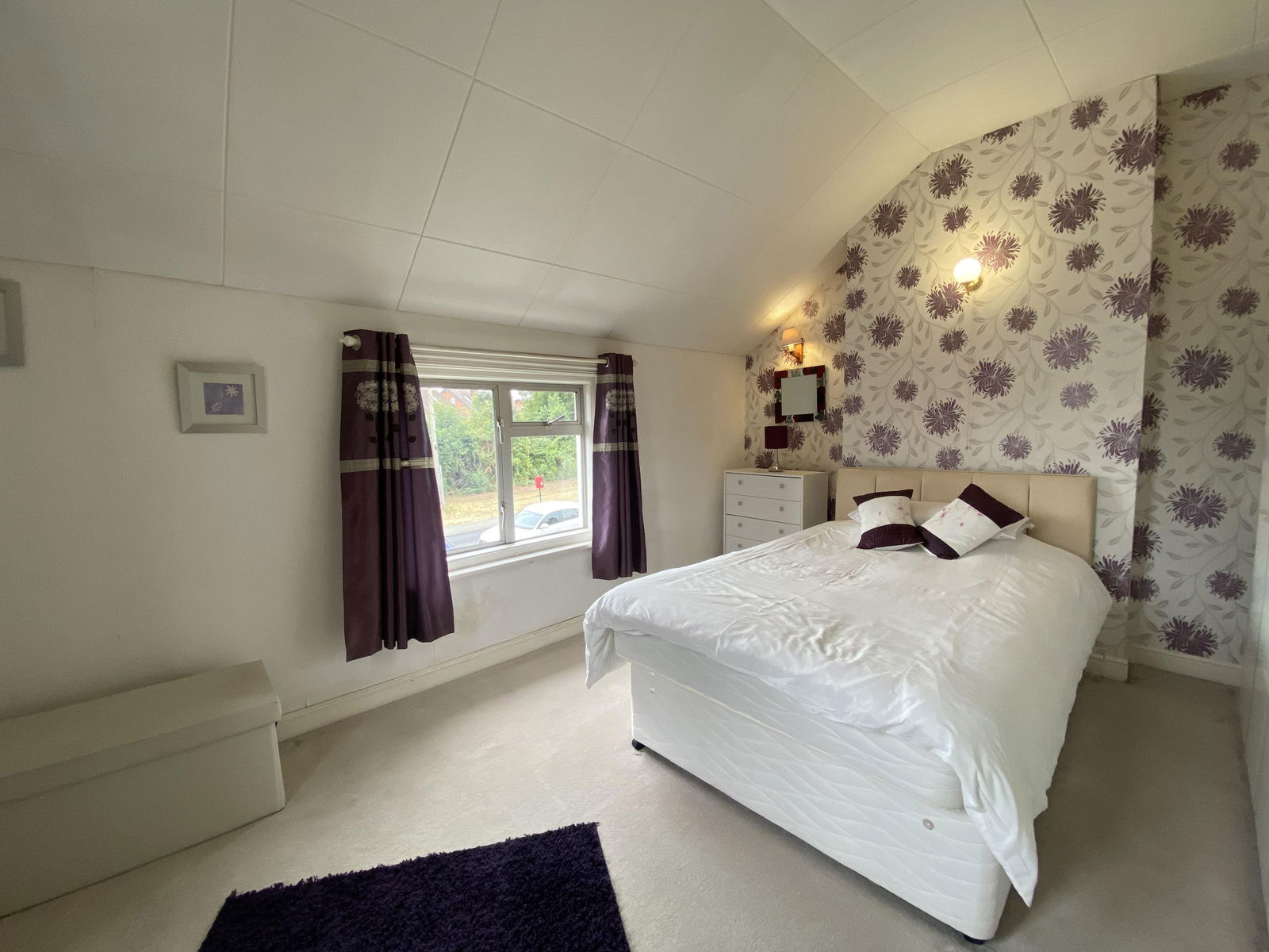 Carpet, dual aspect glazed windows to the front and side, two wall lights, radiator, space for wardrobes.