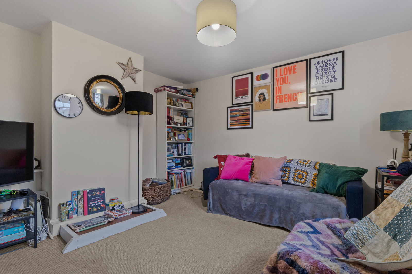 Carpet, double glazed window to the front, ceiling light fitting, radiator, tiled hearth.