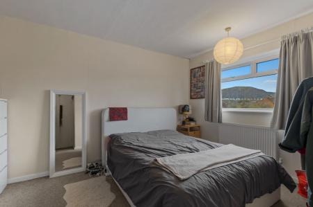 Carpet, double glazed window to the front, view to the hills, radiator, ceiling light fitting.