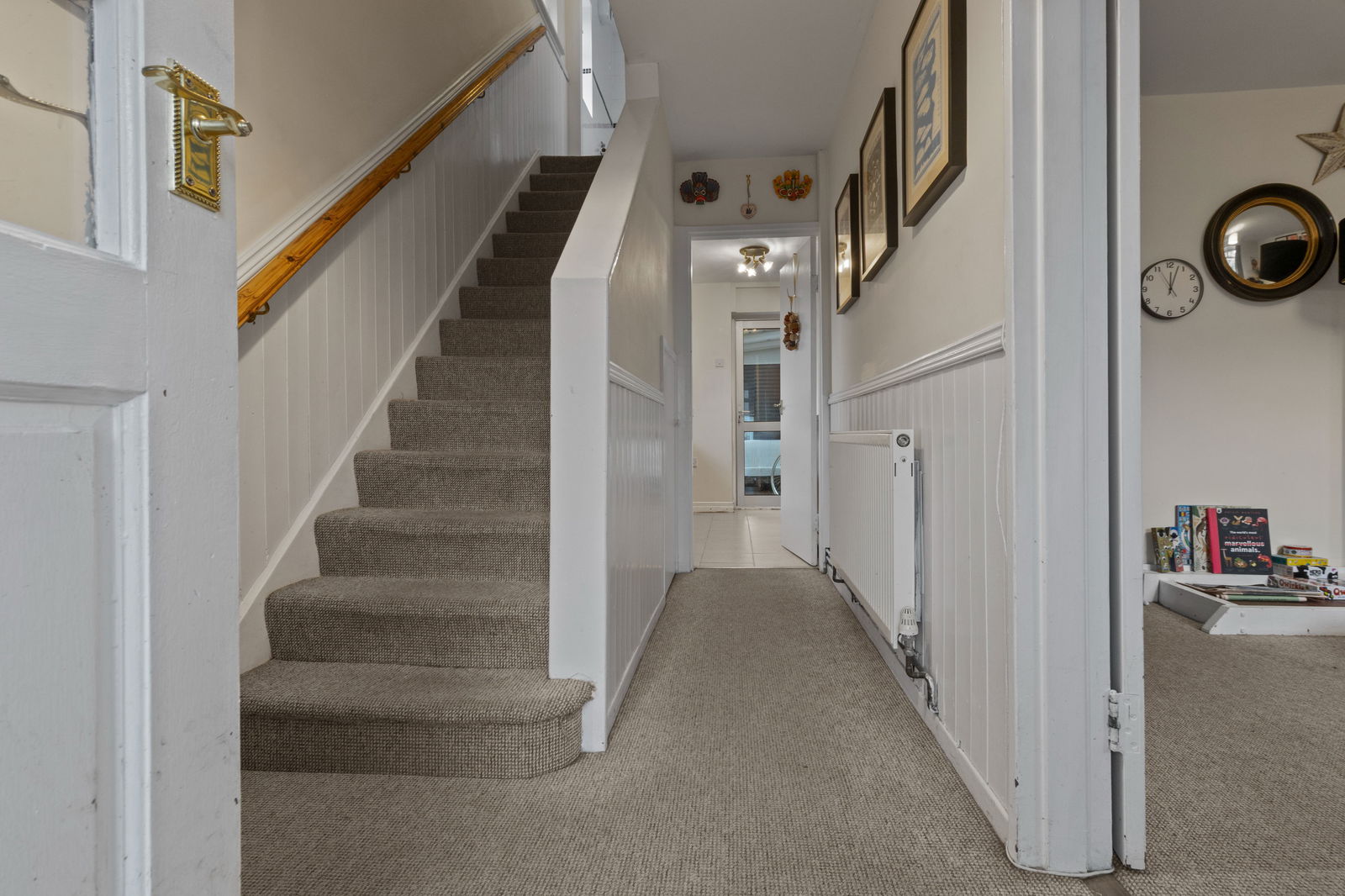 Carpet, radiator, double glazed window to the side and light fitting. Understairs storage cupboard, doors to the sitting room and kitchen.