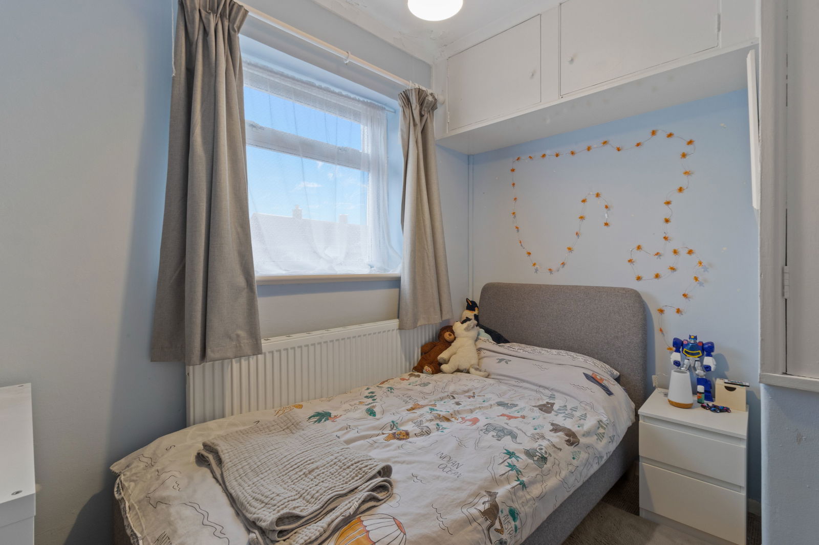 Carpet, double glazed window to the front, ceiling light fitting, built-in cupboards, radiator.