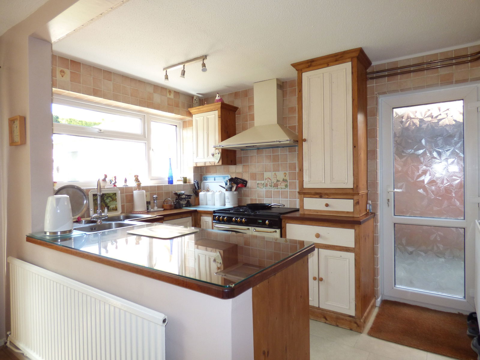 Tile effect flooring, ceiling light fitting, double glazed window to rear aspect and UPVC door with obscured glass opening to driveway. Range of Bespoke hand made wooden french country style eye and base level units, one housing the gas boiler that was replaced on 2021, wood worksurface with one and a half bowl stainless steel sink, drainer and mixer tap. Rangemaster with fan assisted OVEN, WARMING DRAWER, gas HOB and HOT PLATE with extractor over. Space for under counter fridge, space and plumbing for washing machine and dishwasher.