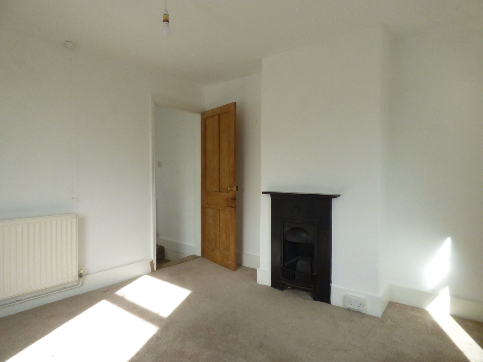 Stairs to second floor, double glazed window, ceiling light point, radiator and wooden doors to